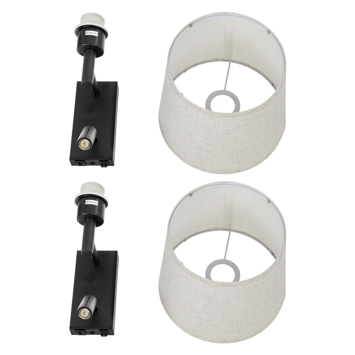GLOBOSTAR® ROULETTE-R 61379 Μοντέρνο Φωτιστικό Τοίχου - Απλίκα Ξενοδοχείου Reading Light με Φορτιστή USB 3A & Ντουί 1 x E27 LED 3W 360lm 36° & 360° AC 220-240V IP20 Φυσικό Λευκό 4500K - Bridgelux COB Chip & TÜV SÜD Driver - Μαύρο & Μπεζ - Μ22 x Π23.5 x Υ3