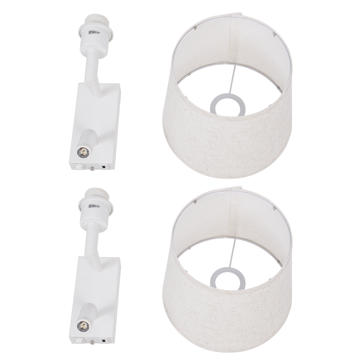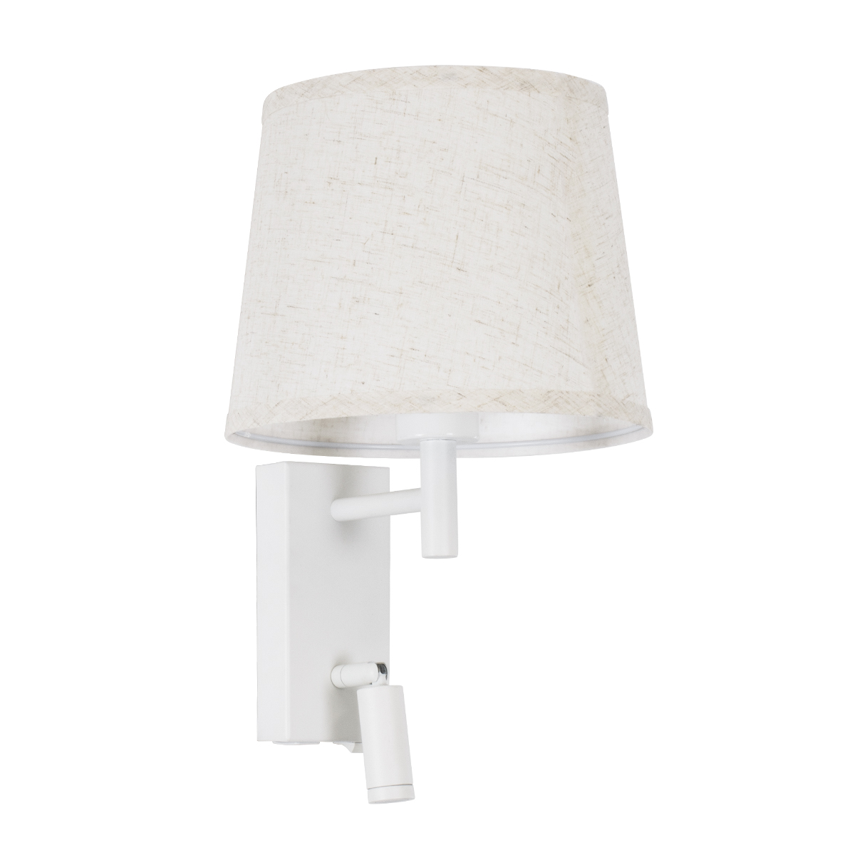 GLOBOSTAR® ROULETTE-R 61380 Μοντέρνο Φωτιστικό Τοίχου - Απλίκα Ξενοδοχείου Reading Light με Φορτιστή USB 3A & Ντουί 1 x E27 LED 3W 360lm 36° & 360° AC 220-240V IP20 Φυσικό Λευκό 4500K - Bridgelux COB Chip & TÜV SÜD Driver - Λευκό Ματ & Μπεζ - Μ22 x Π23.5