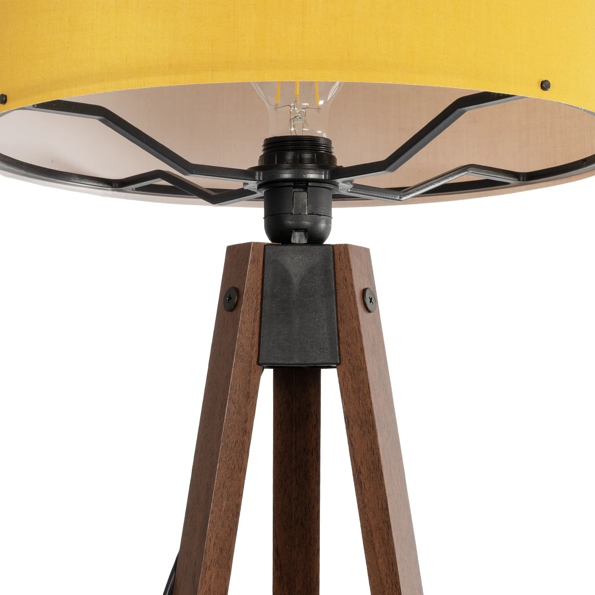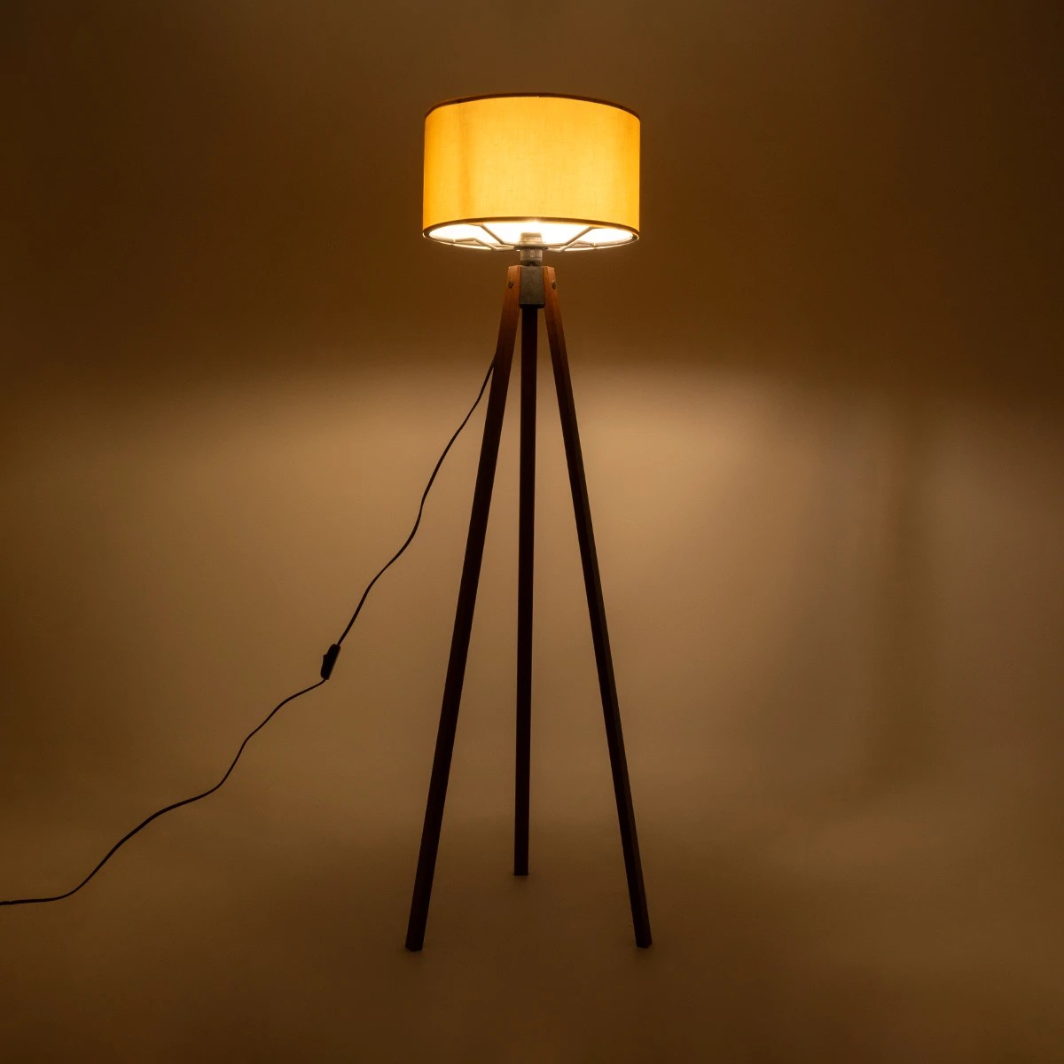 GloboStar® SAGA 204-0033 Μοντέρνο Eπιδαπέδιο Φωτιστικό Μονόφωτο 1 x E27 IP20 Καφέ Ξύλο με Κίτρινο Ύφασμα - Μ38 x Π38 x Υ140cm