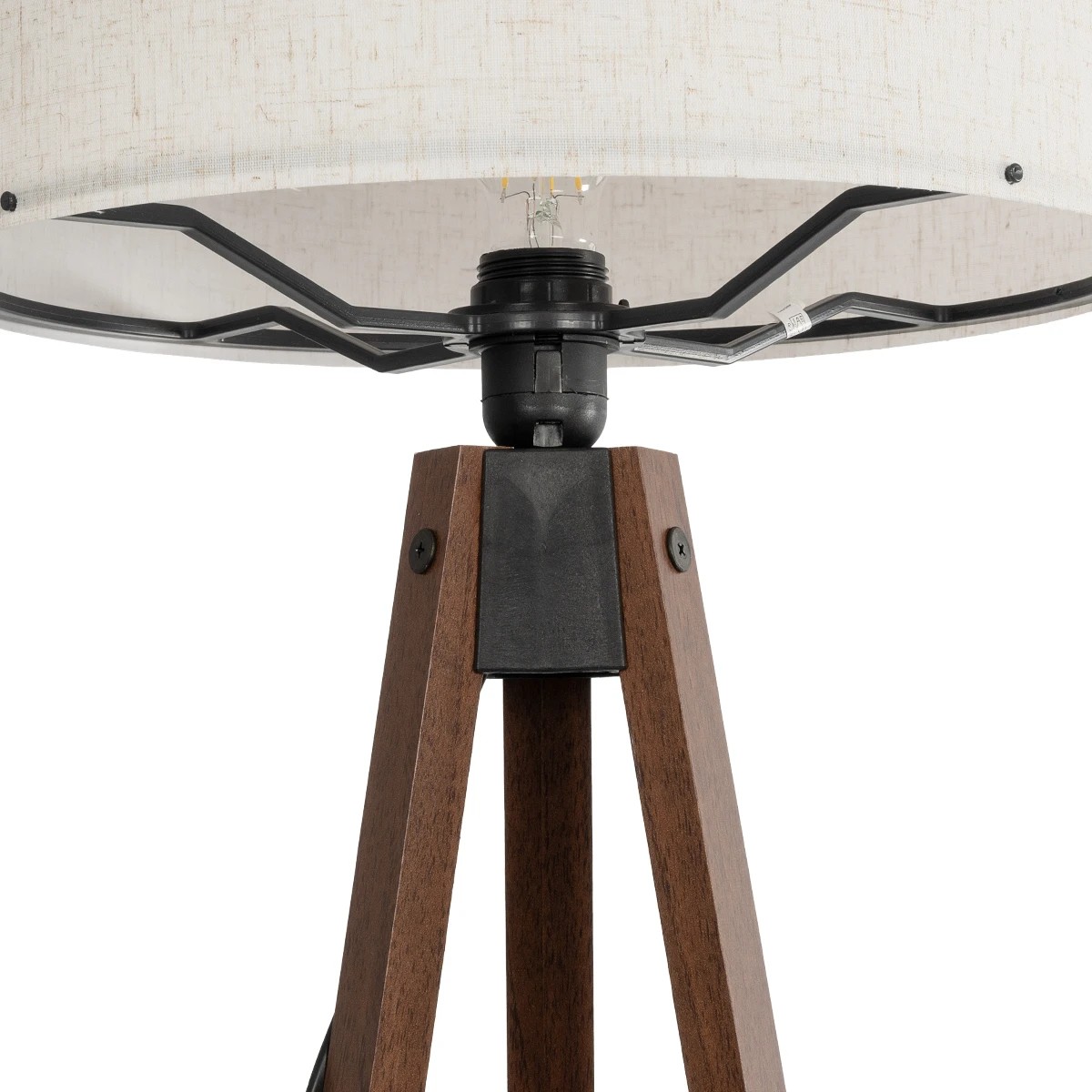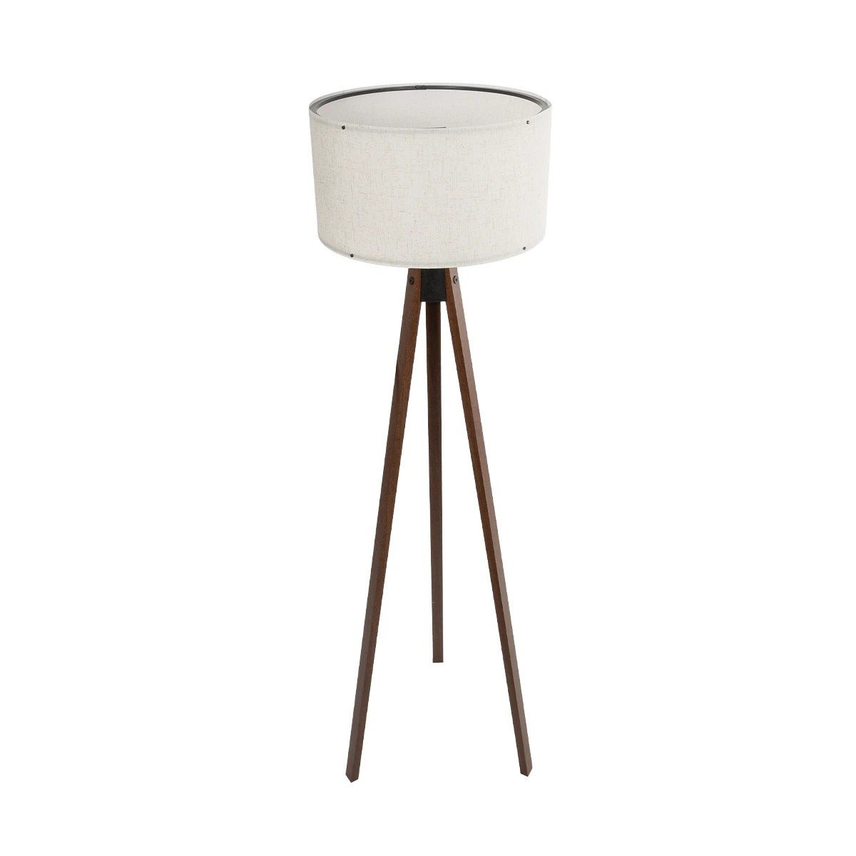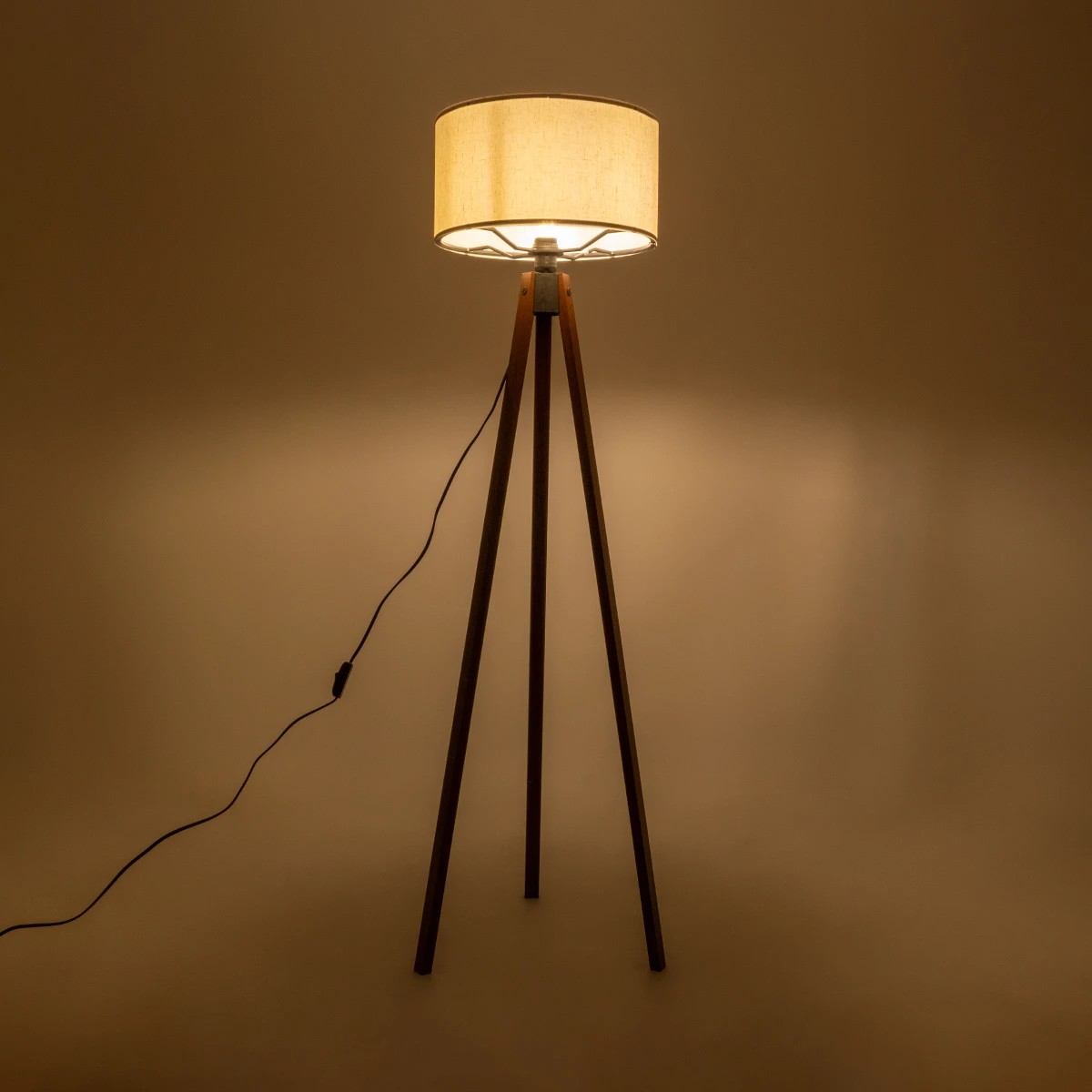 GloboStar® SAGA 204-0035 Μοντέρνο Eπιδαπέδιο Φωτιστικό Μονόφωτο 1 x E27 IP20 Καφέ Ξύλο με Λευκό Ύφασμα - Μ38 x Π38 x Υ140cm