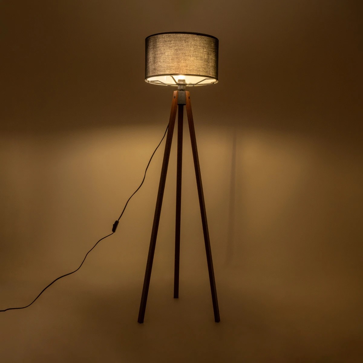 GloboStar® SAGA 204-0038 Μοντέρνο Eπιδαπέδιο Φωτιστικό Μονόφωτο 1 x E27 IP20 Καφέ Ξύλο με Μαύρο Ύφασμα - Μ38 x Π38 x Υ140cm