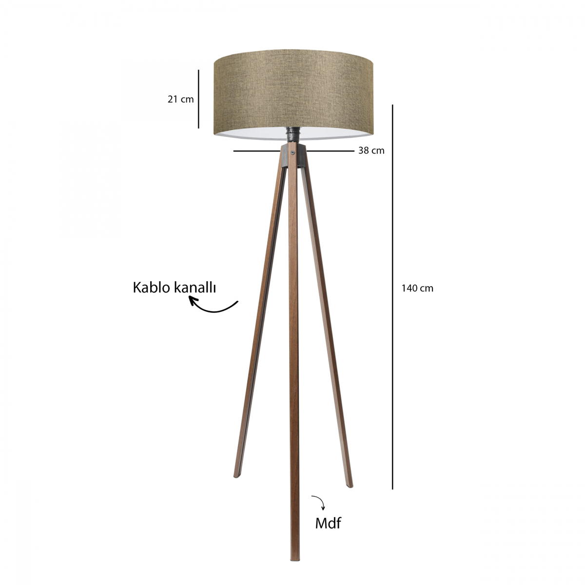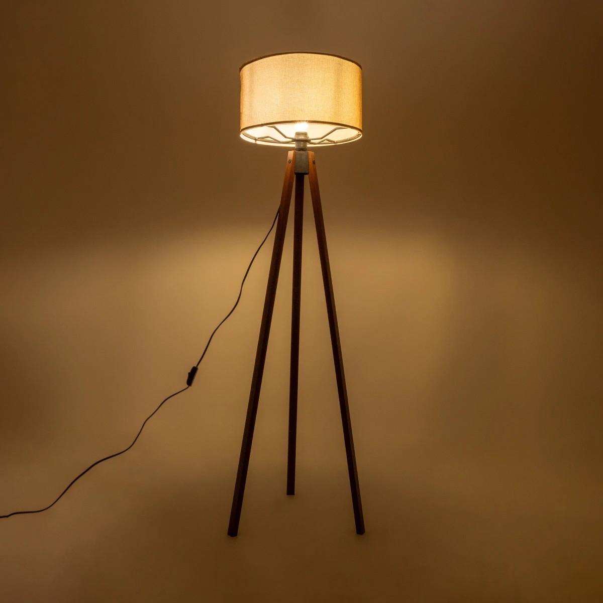 GloboStar® SAGA 204-0039 Μοντέρνο Eπιδαπέδιο Φωτιστικό Μονόφωτο 1 x E27 IP20 Καφέ Ξύλο με Μπεζ Ύφασμα - Μ38 x Π38 x Υ140cm