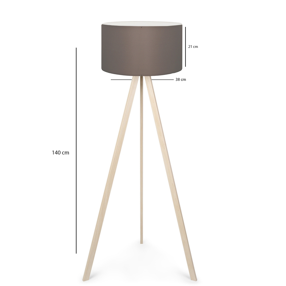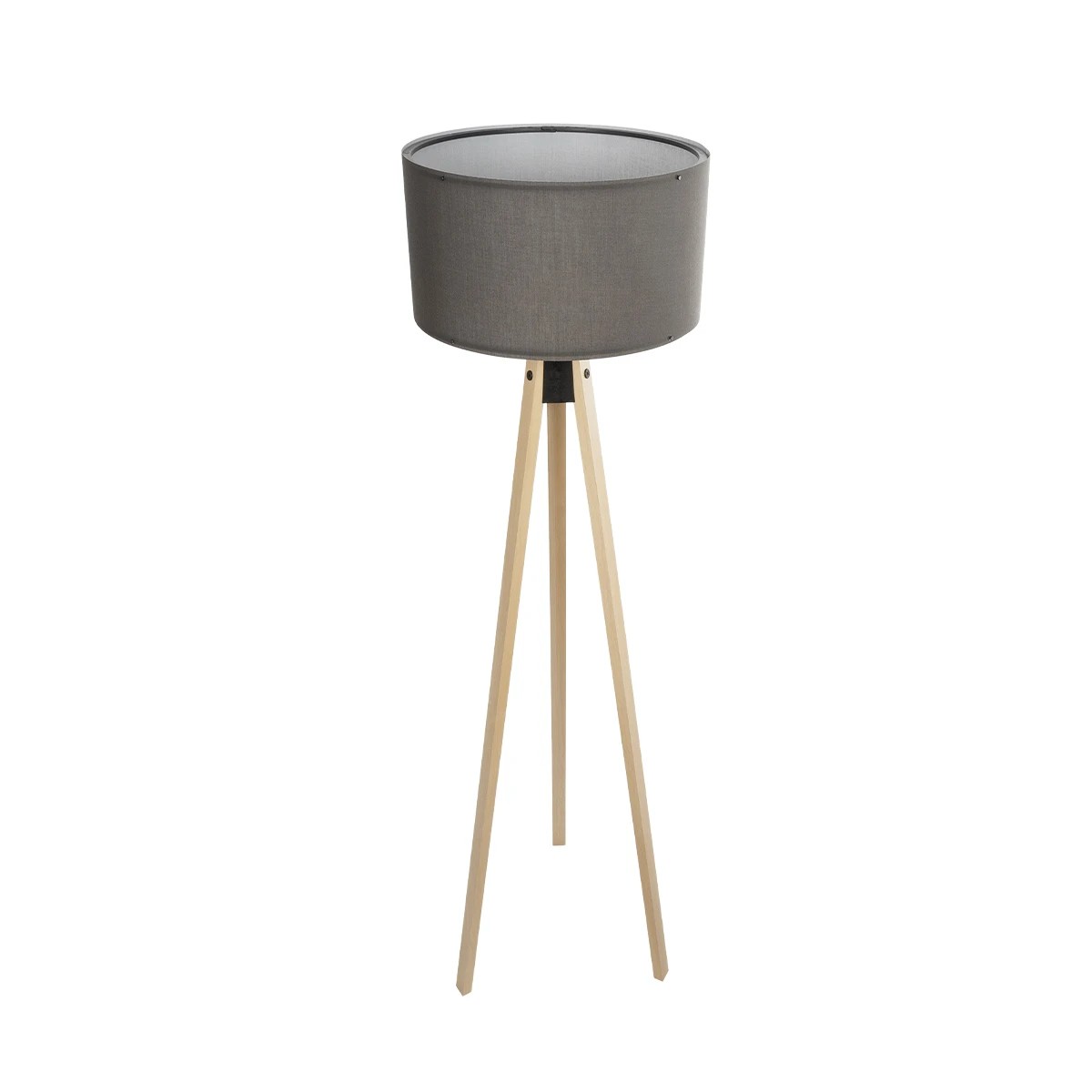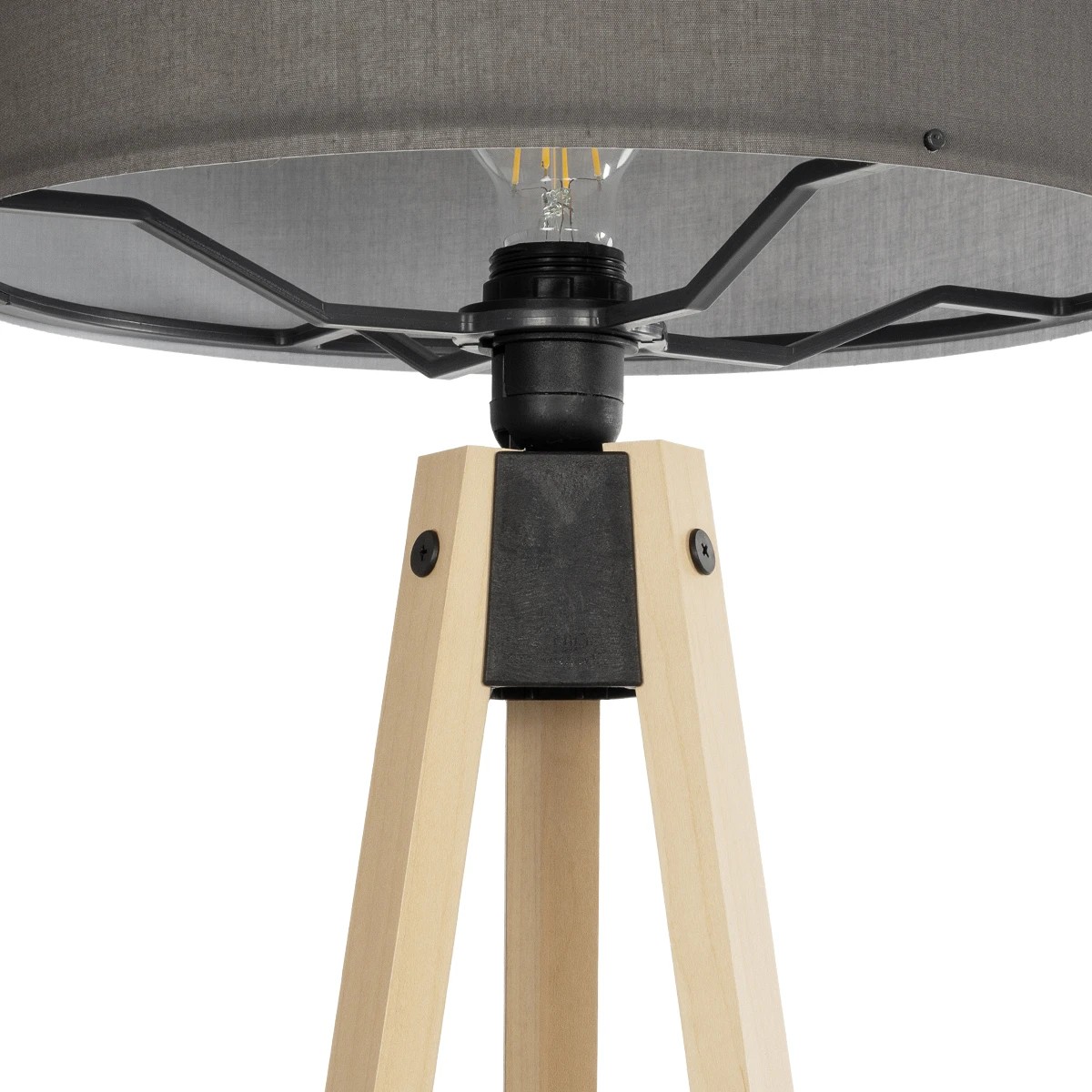 GloboStar® SAGA 204-0044 Μοντέρνο Eπιδαπέδιο Φωτιστικό Μονόφωτο 1 x E27 IP20 Μπεζ Ξύλο με Γκρι Ύφασμα - Μ38 x Π38 x Υ140cm