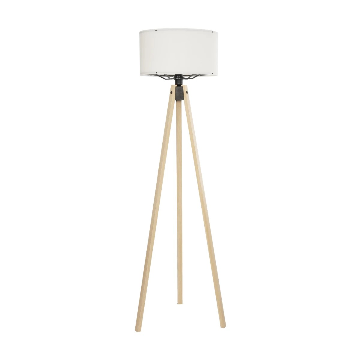 GloboStar® SAGA 204-0046 Μοντέρνο Eπιδαπέδιο Φωτιστικό Μονόφωτο 1 x E27 IP20 Μπεζ Ξύλο με Λευκό Ύφασμα - Μ38 x Π38 x Υ140cm