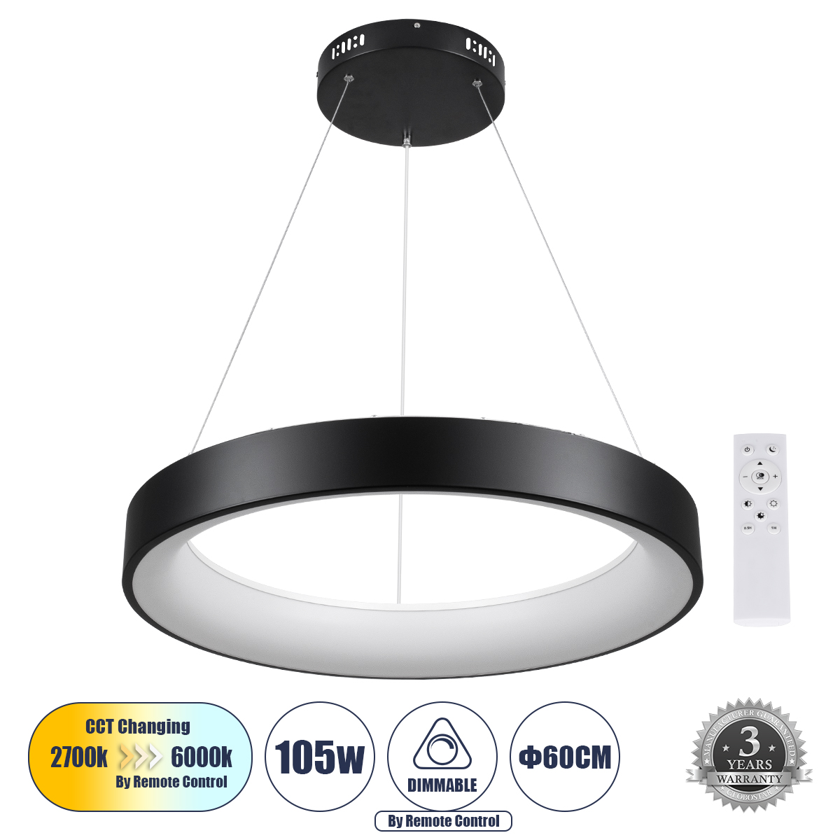 GLOBOSTAR® SALEM 61245 Μοντέρνο Κρεμαστό Φωτιστικό Οροφής LED 105W 12075lm 120° AC 220-240V IP20 Ρυθμιζόμενο Λευκό CCT με Χειριστήριο από 2700K έως 6000K Dimmable - Lumileds SMD Chip - Μαύρο Ματ - Μ60 x Π60 x Υ7cm - 3 Χρόνια Εγγύηση