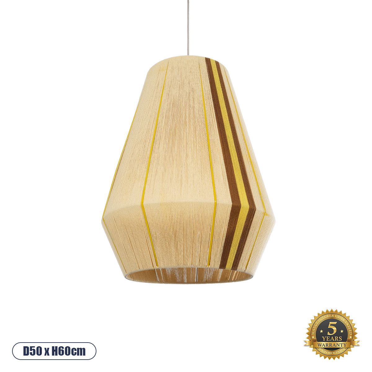 GLOBOSTAR® SALERNO 02334 Boho Κρεμαστό Φωτιστικό Οροφής με Ντουί 1 x E27 AC 220-240V IP20 - Μπεζ & Καφέ - Μ50 x Π50 x Υ60cm
