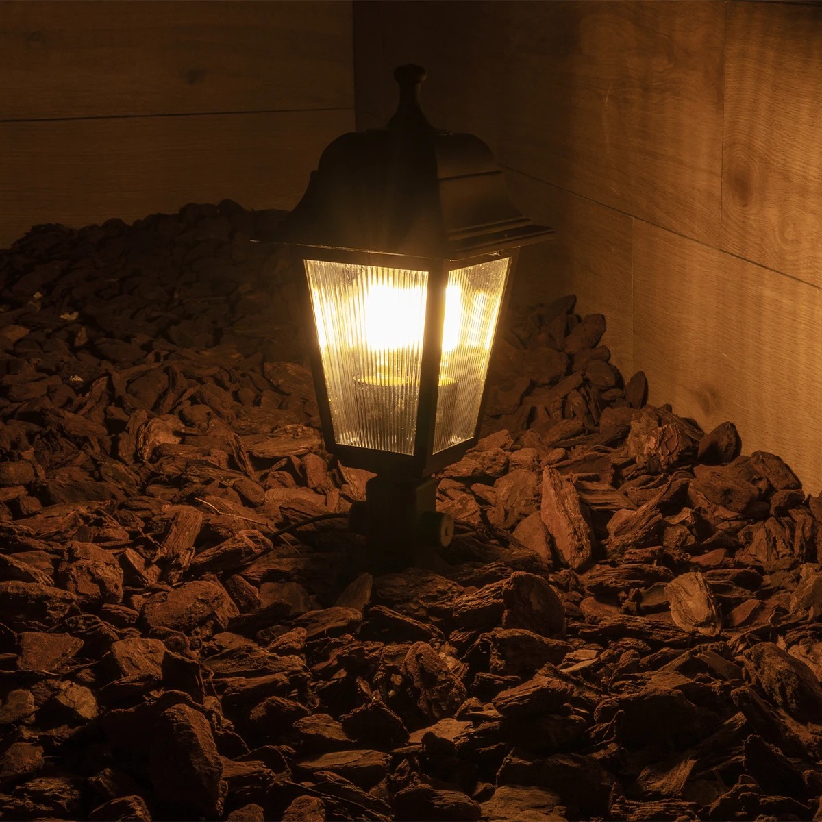 GloboStar® SOLME 203-0213 Vintage Καρφωτό Φωτιστικό Φαναράκι Μονόφωτο 1 x E27 IP44 Μαύρο & Διάφανο Πλαστικό - Μ22 x Π22 x Υ35cm