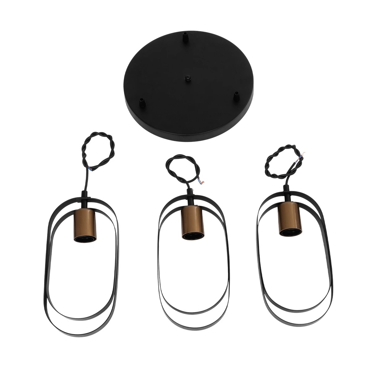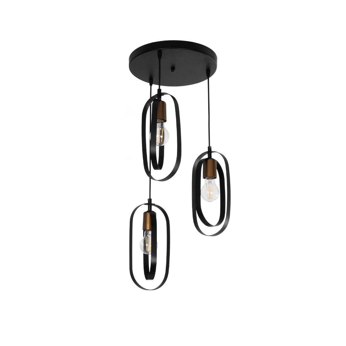 GLOBOSTAR® SPARKIO 201-0025 Vintage Κρεμαστό Φωτιστικό Οροφής με Ντουί 3 x E27 AC 220-240V IP20 - Μαύρο & Χάλκινο - Μ36 x Π36 x Υ62cm