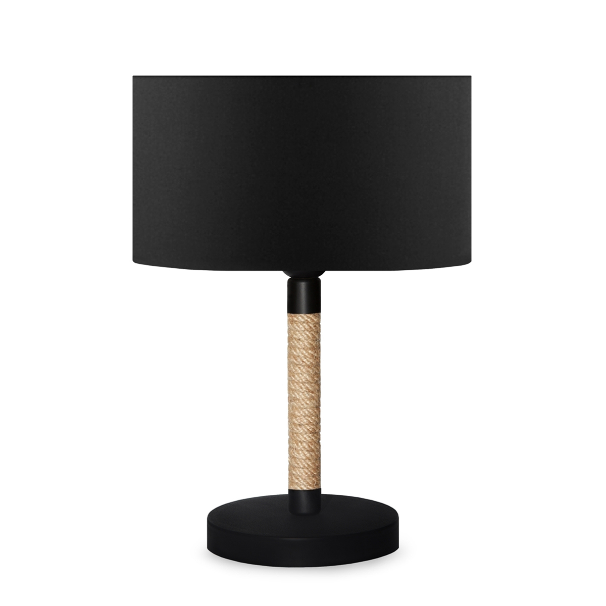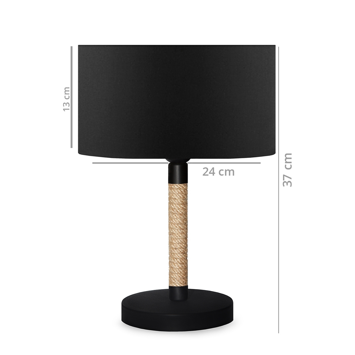 GloboStar® STRING 204-0072 Μοντέρνο Eπιτραπέζιο Φωτιστικό Πορτατίφ Μονόφωτο 1 x E27 IP20 Μαύρο Mέταλλο, Μπεζ Σχοινί με Μαύρο Ύφασμα - Μ24 x Π24 x Υ37cm