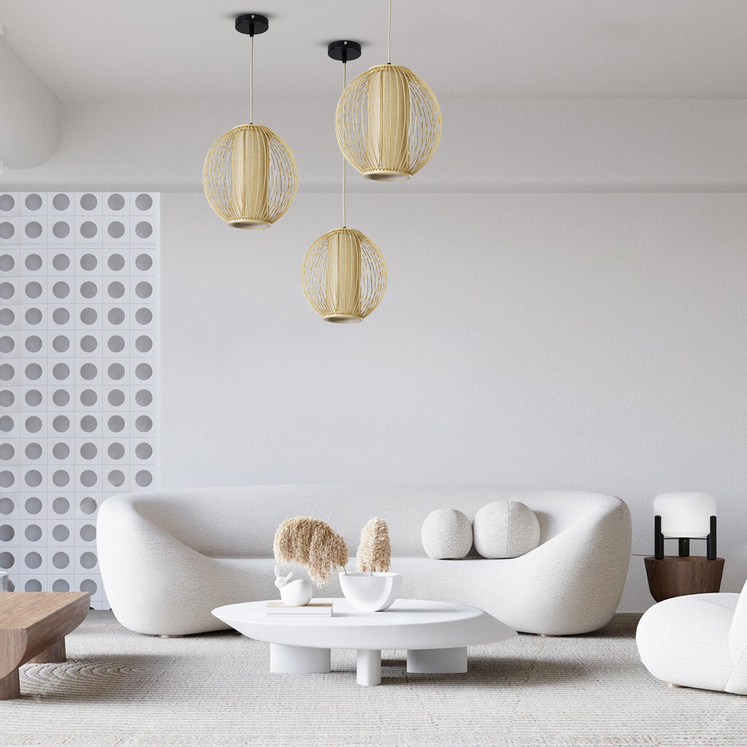 GLOBOSTAR® HIBISCUS 01934 Boho Κρεμαστό Φωτιστικό Οροφής με Ντουί 1 x E27 AC 220-240V IP20 - Μπεζ - Μ28 x Π28 x Υ28cm