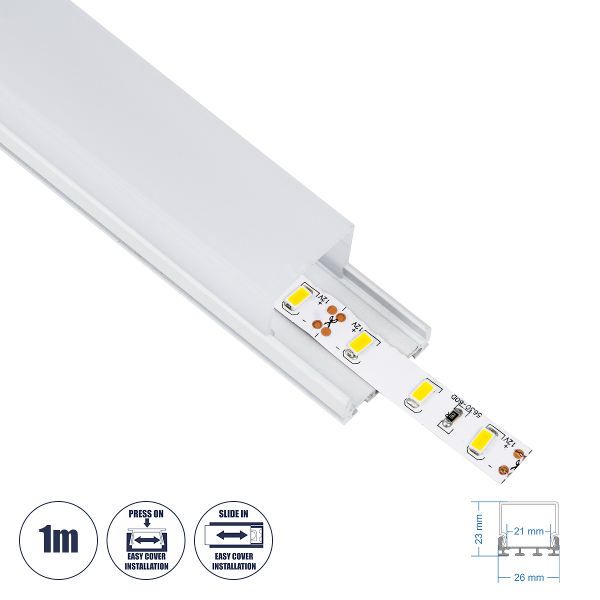 GloboStar® SURFACEPENDANT-PROFILE 70848-1M Προφίλ Αλουμινίου - Βάση & Ψύκτρα Ταινίας LED με Λευκό Γαλακτερό Κάλυμμα - Επιφανειακή & Κρεμαστή Χρήση - Πατητό Κάλυμμα - Λευκό - 1 Μέτρο - Μ100 x Π2.6 x Υ2.3cm