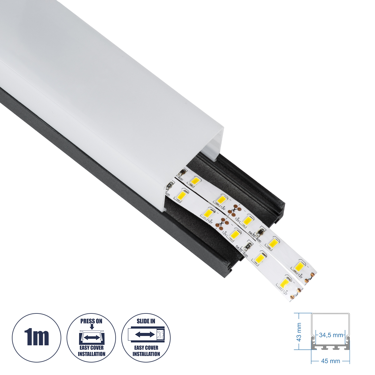 GloboStar® SURFACEPENDANT-PROFILE 70866-1M Προφίλ Αλουμινίου - Βάση & Ψύκτρα Ταινίας LED με Λευκό Γαλακτερό Κάλυμμα - Επιφανειακή & Κρεμαστή Χρήση - Πατητό Κάλυμμα - Μαύρο - 1 Μέτρο - Μ100 x Π4.5 x Υ4.2cm