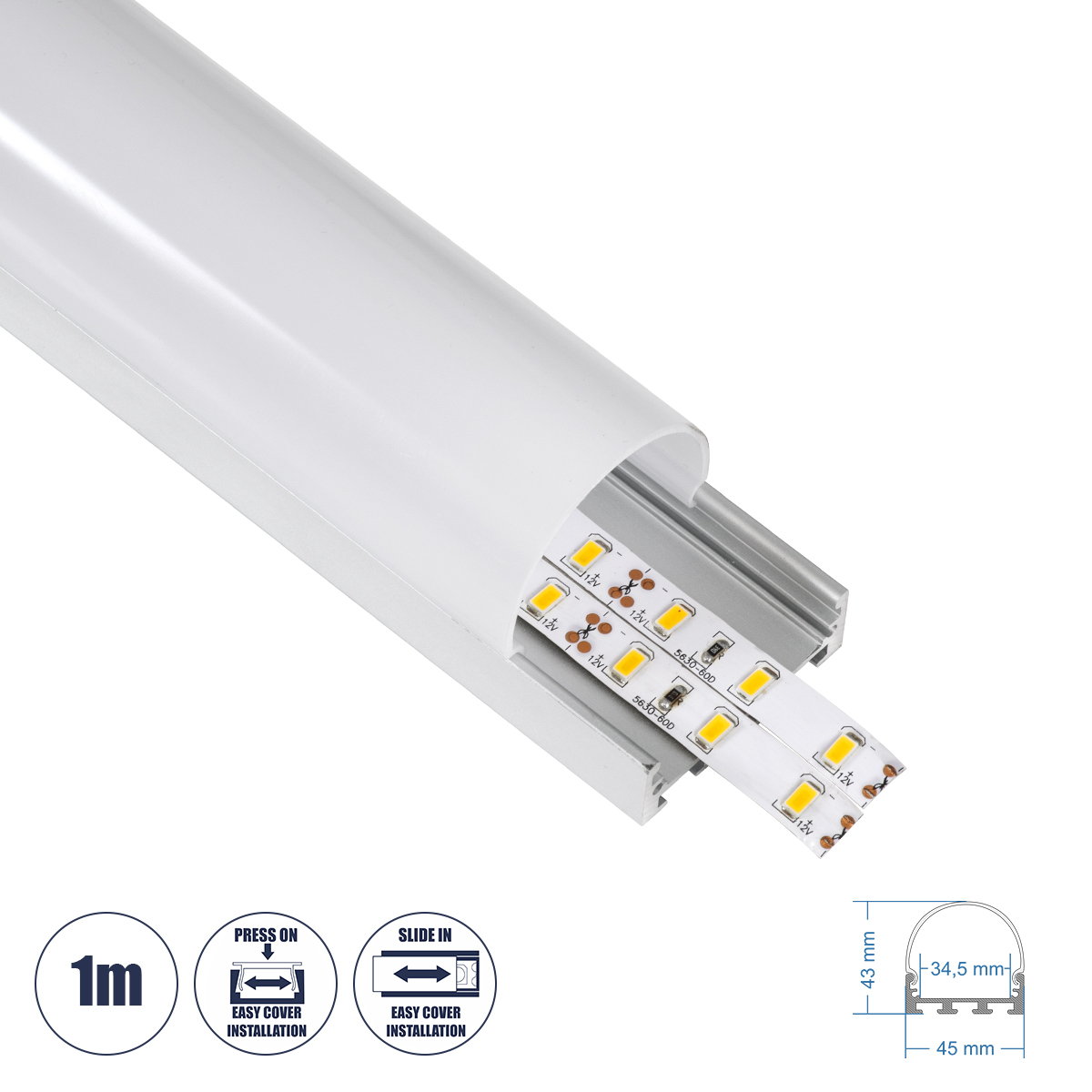 GloboStar® SURFACEPENDANT-PROFILE 70870-1M Προφίλ Αλουμινίου - Βάση & Ψύκτρα Ταινίας LED με Λευκό Γαλακτερό Κάλυμμα - Επιφανειακή & Κρεμαστή Χρήση - Πατητό Κάλυμμα - Ασημί - 1 Μέτρα - Μ100 x Π4.5 x Υ4.2cm