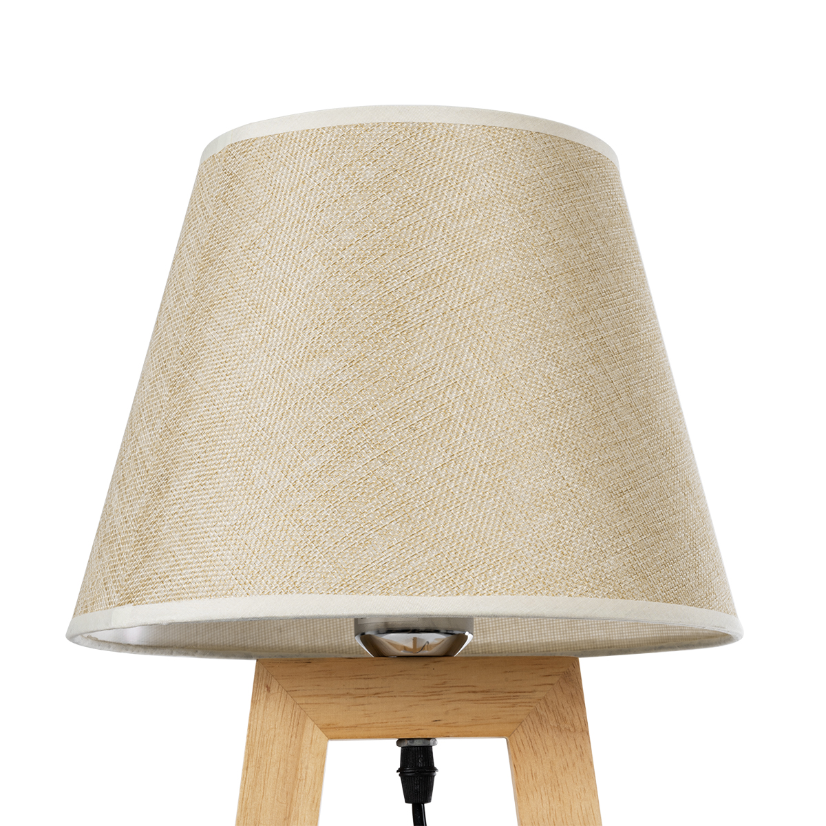 GloboStar® TAKIKO 02042 Μοντέρνο Επιτραπέζιο Φωτιστικό Πορτατίφ Μονόφωτο 1 x E27 IP20 Μπεζ Ξύλο με Μπεζ Ύφασμα - Μ25 x Π25 x Υ48cm