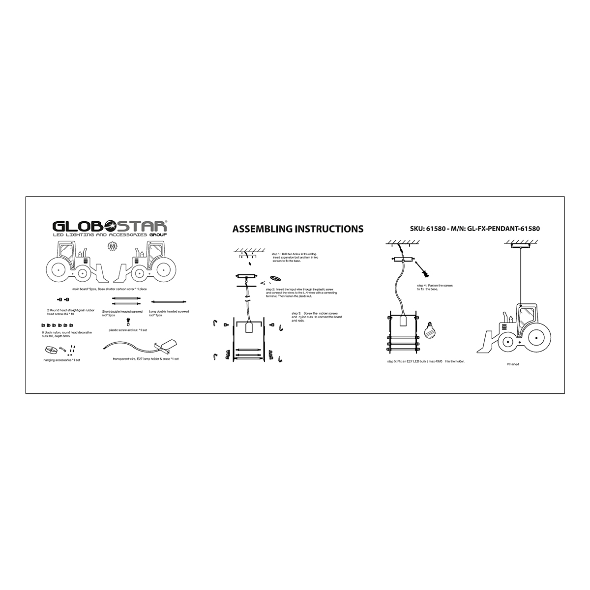 GLOBOSTAR® TRACTOR 61580 Παιδικό Κρεμαστό Φωτιστικό Οροφής με Ντουί 1 x E27 AC 220-240V IP20 - Πολύχρωμο - Μ40 x Π15.5 x Υ26.5cm