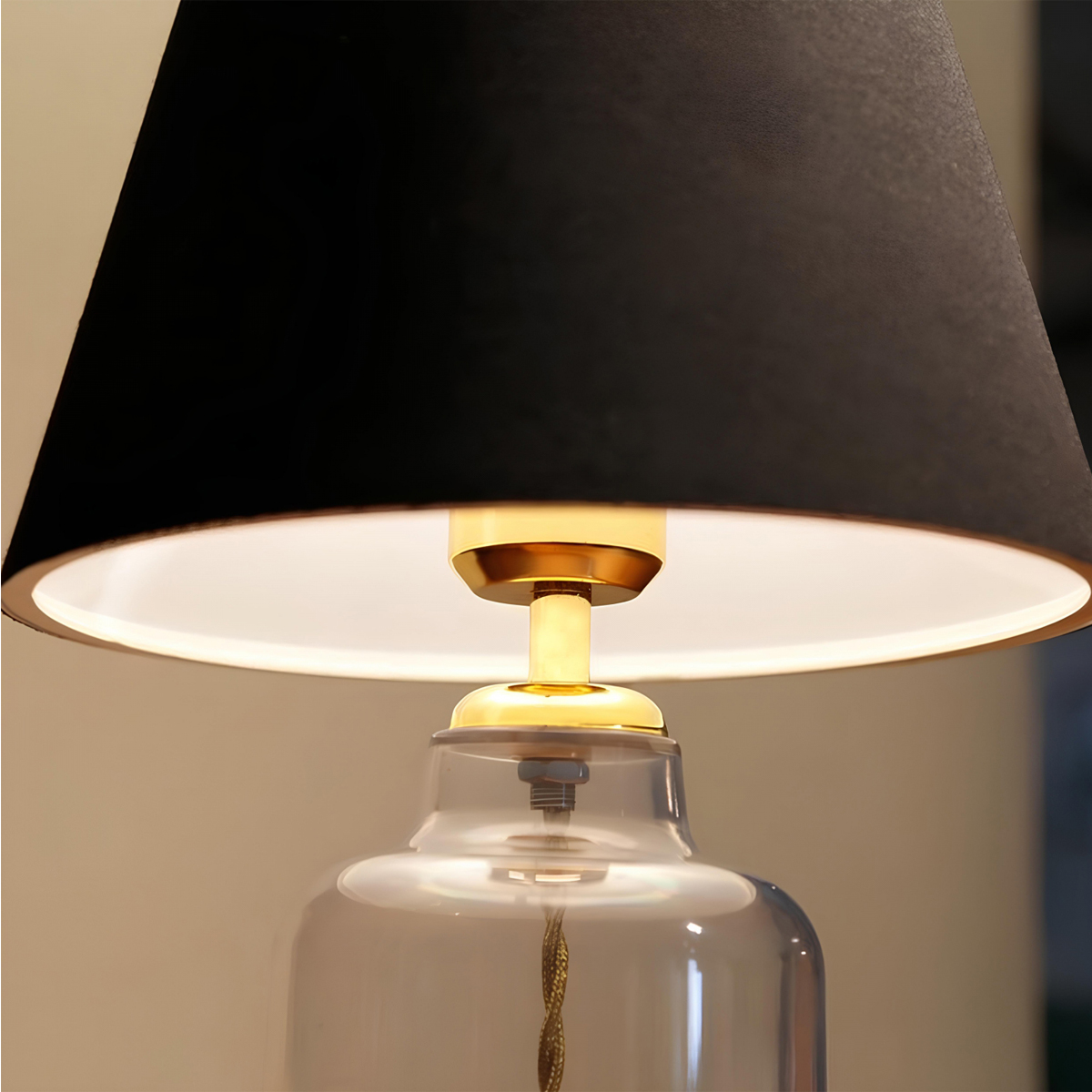 GloboStar® TRANS 204-0054 Μοντέρνο Eπιτραπέζιο Φωτιστικό Πορτατίφ Μονόφωτο 1 x E27 IP20 Διάφανο Πλαστικό με Μαύρο Ύφασμα - Μ22 x Π22 x Υ14cm