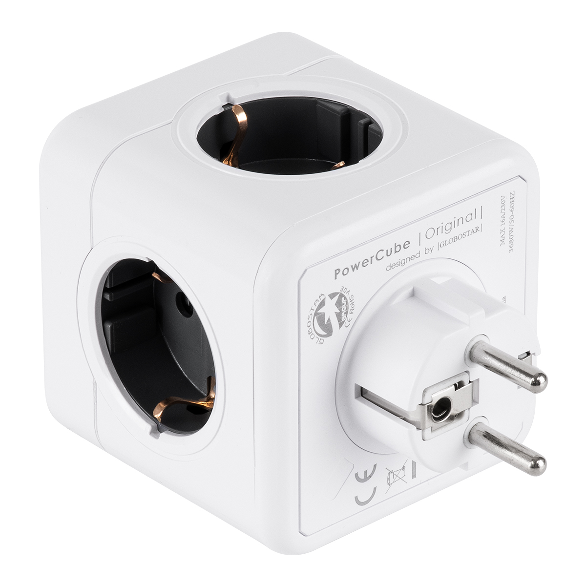 GLOBOSTAR® POWERCUBE 79627 Πολύπριζο 5 Θέσεων με 5 x EU Schuko Πρίζες Ασφαλείας Childproof AC 220-240V 3680W/16A Max Load IP20 - Λευκό & Γκρι - Μ7.5 x Π11.5 x Υ7.5cm