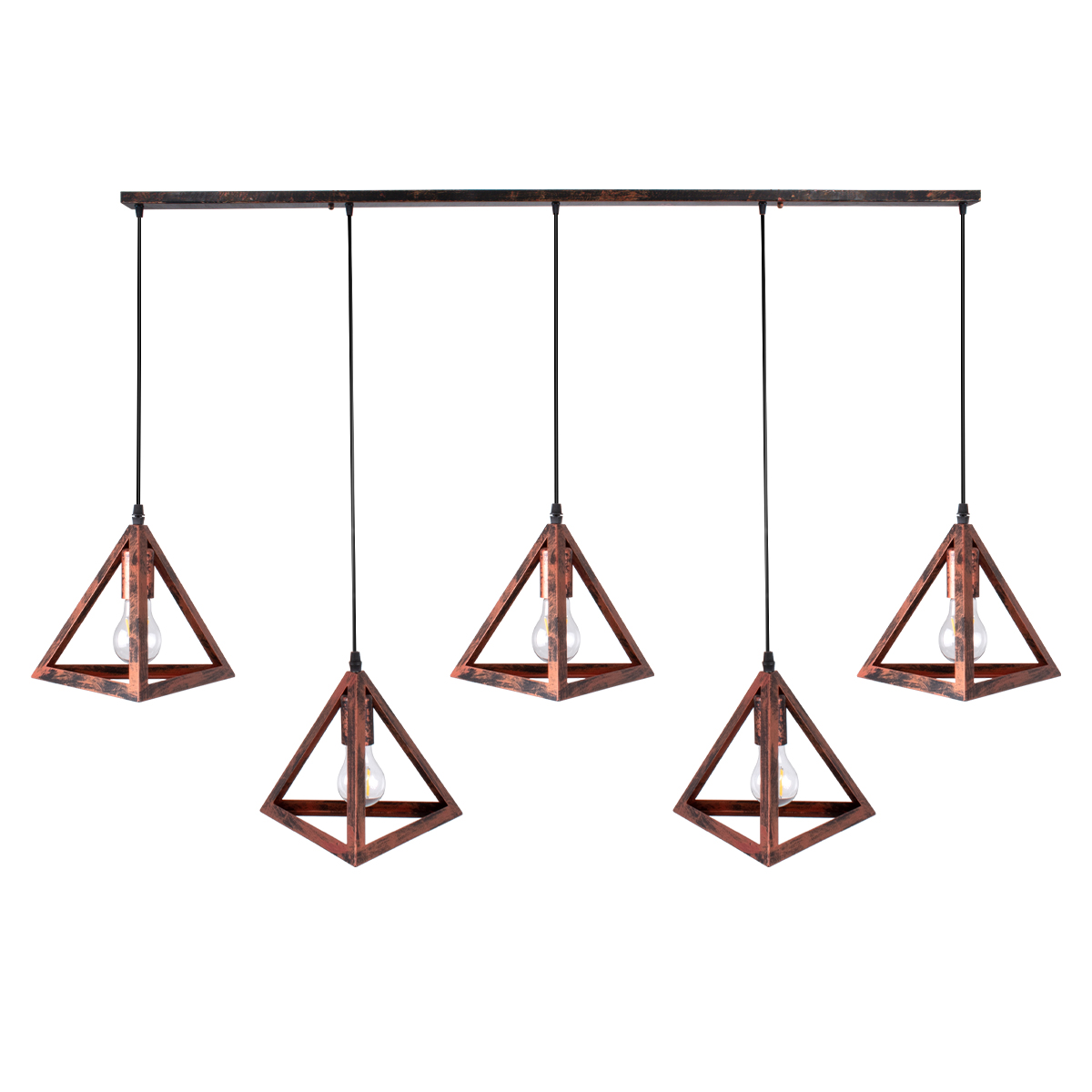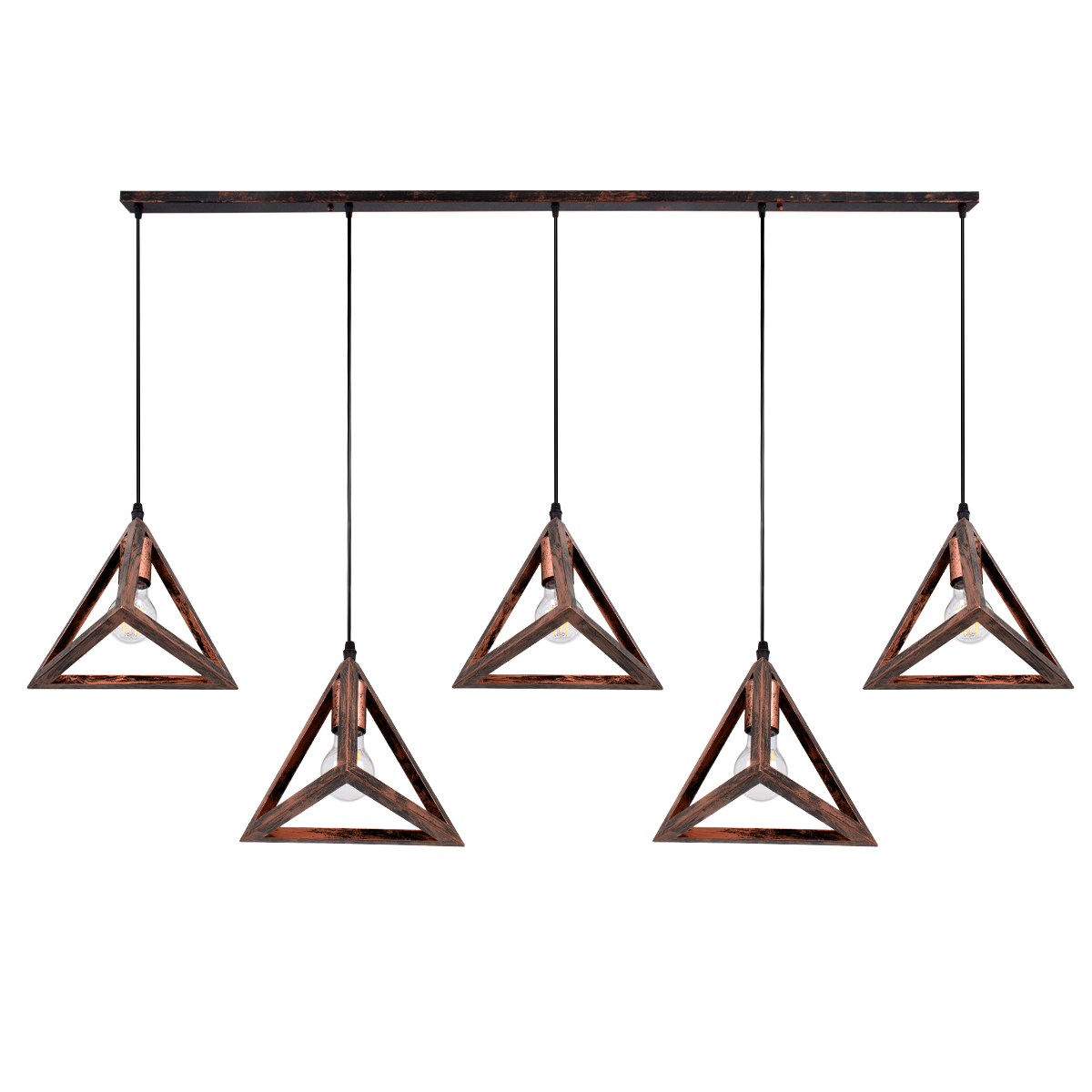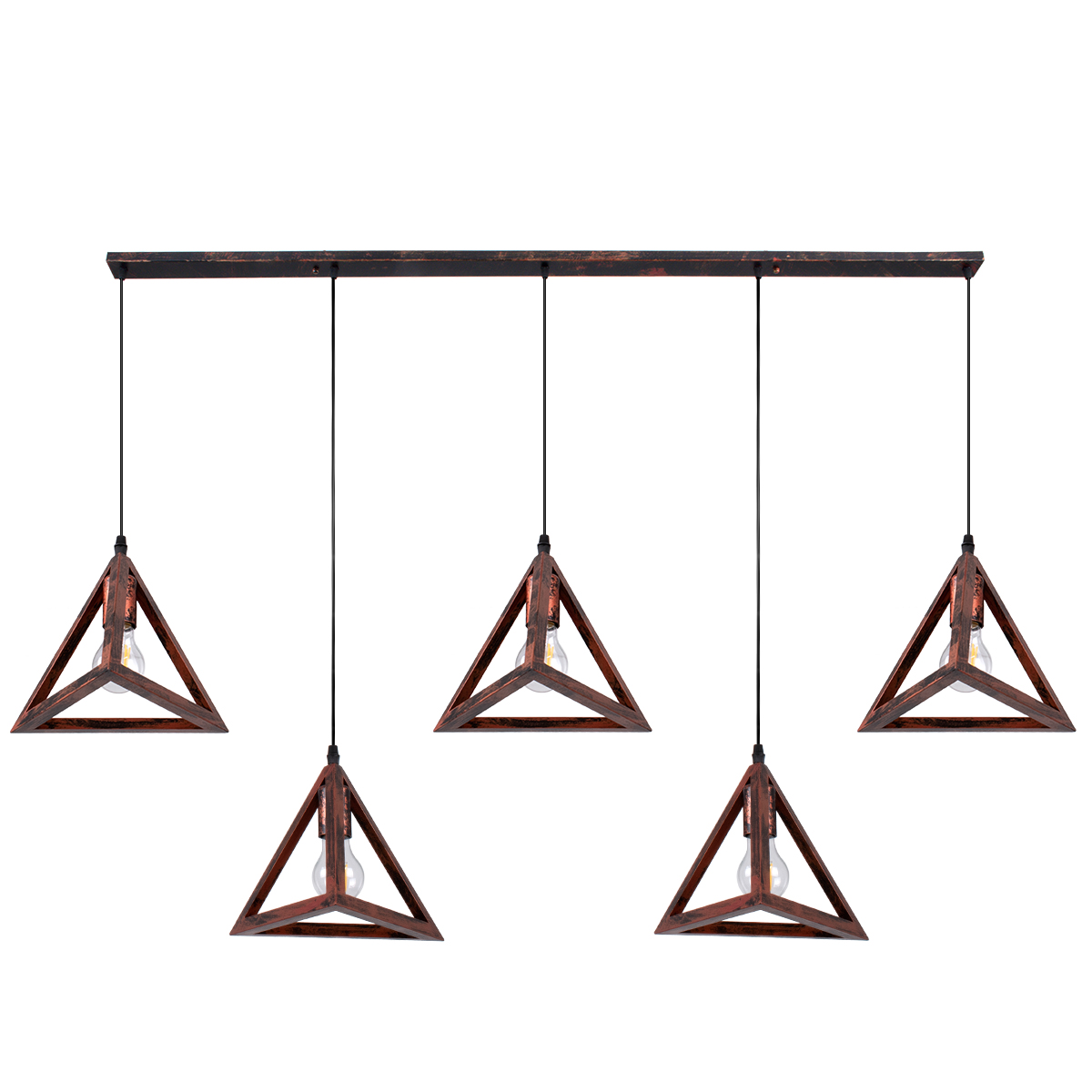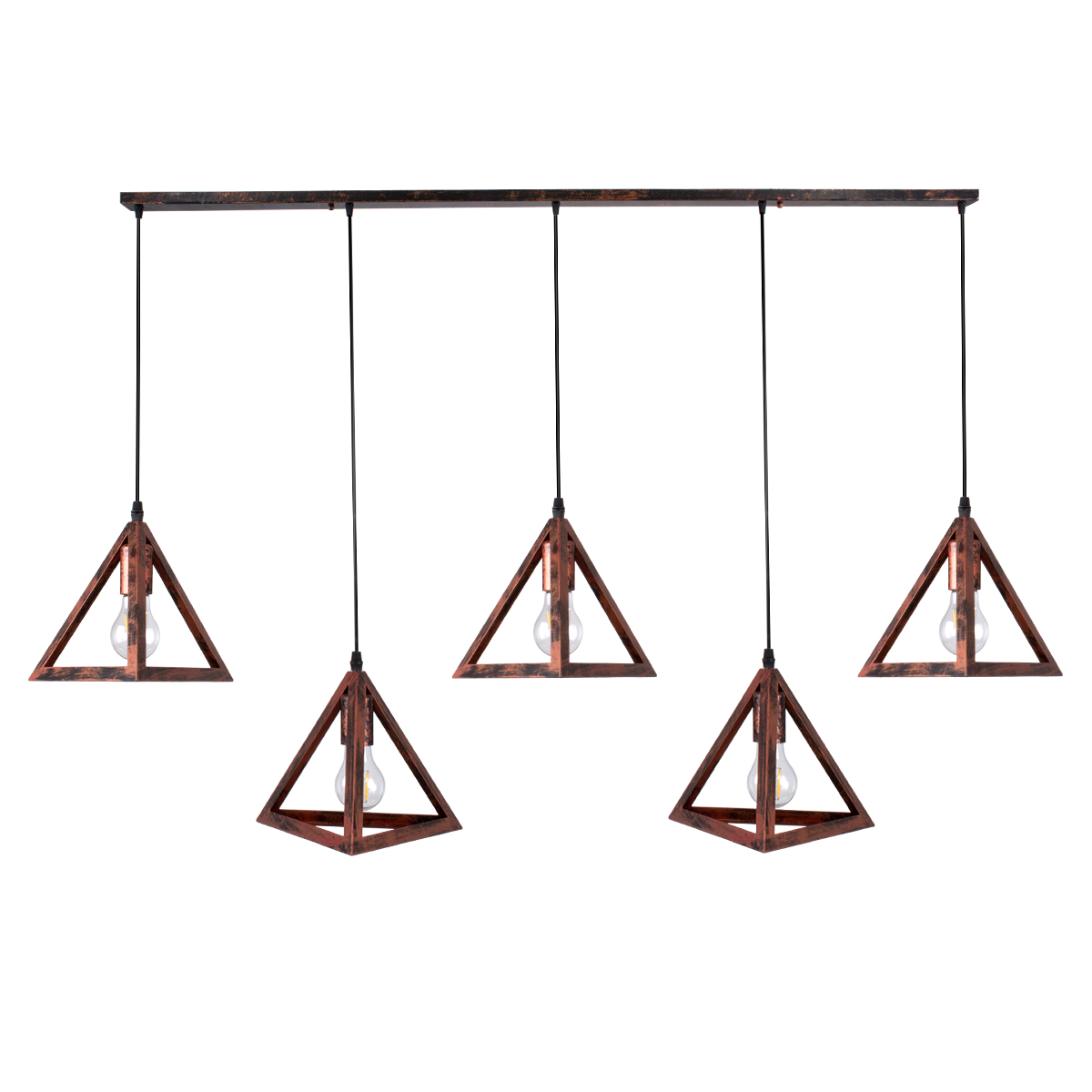 GLOBOSTAR® TRIANGLE 00609 Μοντέρνο Κρεμαστό Φωτιστικό Οροφής με Ντουί 5 x E27 AC 220-240V IP20 - Χάλκινο - Μ170 x Π22 x Y130cm