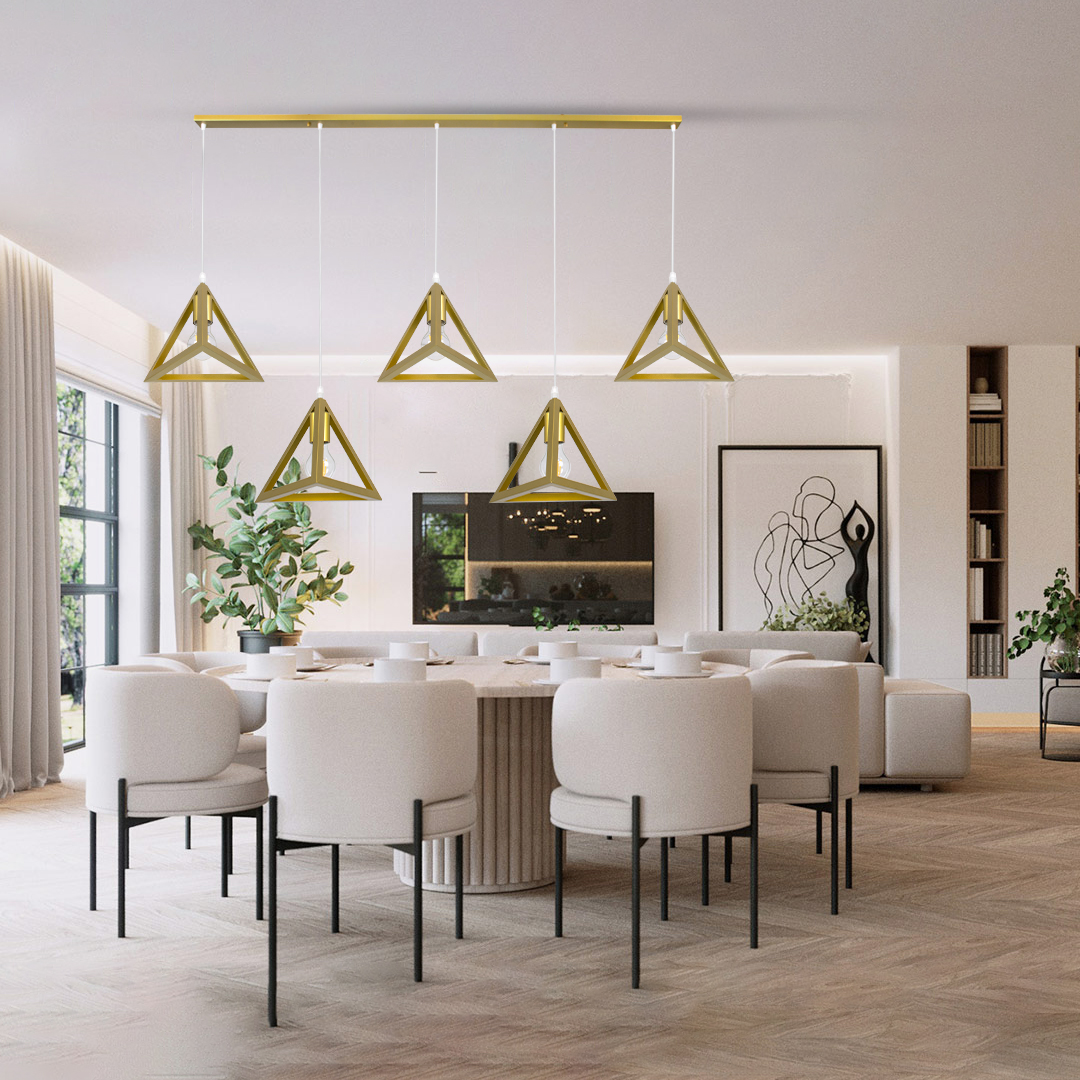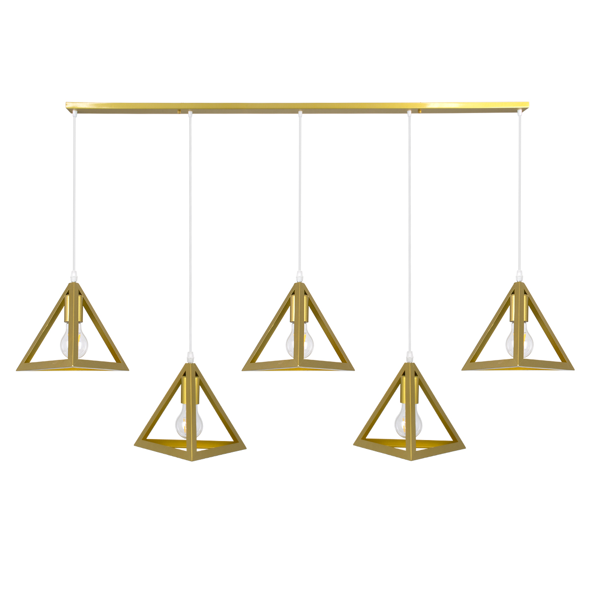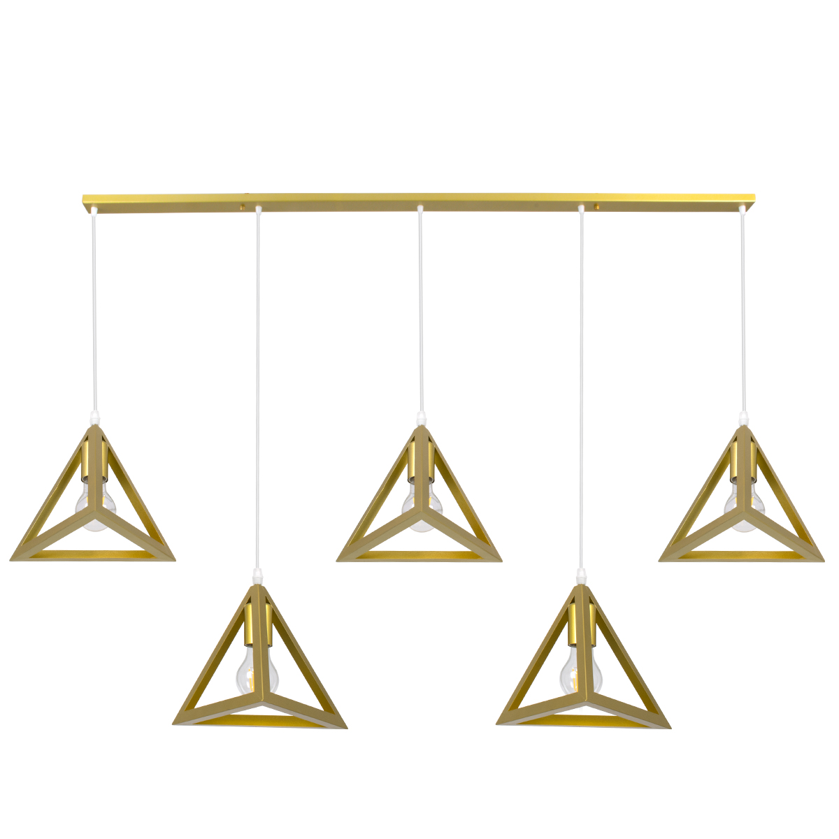 GLOBOSTAR® TRIANGLE 00610 Μοντέρνο Κρεμαστό Φωτιστικό Οροφής με Ντουί 5 x E27 AC 220-240V IP20 - Χρυσό - Μ170 x Π22 x Y130cm