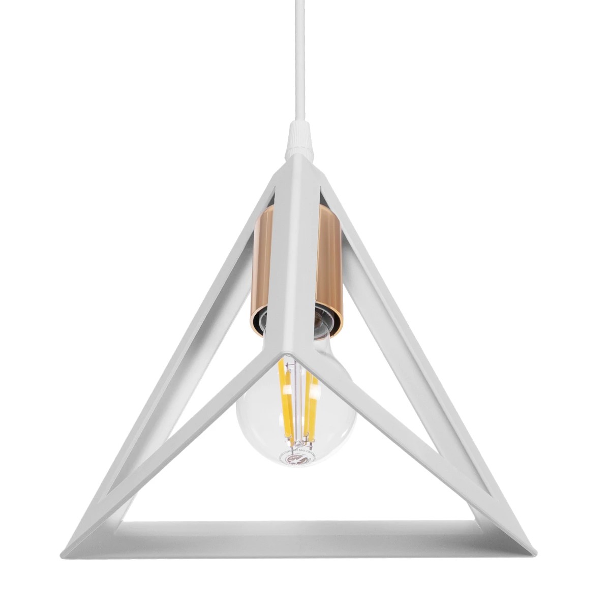 GLOBOSTAR® TRIANGLE 203-0165 Μοντέρνο Κρεμαστό Φωτιστικό Οροφής με Ντουί 1 x E27 AC 220-240V IP20 - Λευκό & Χάλκινο - Μ24 x Π24 x Υ22cm