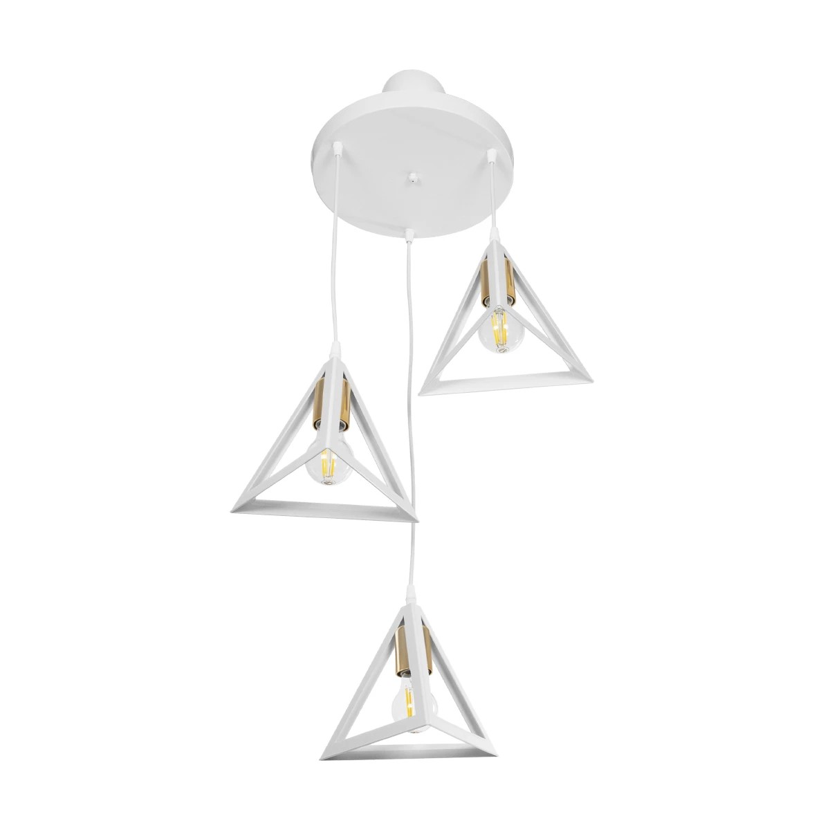 GLOBOSTAR® TRIANGLE 203-0166 Μοντέρνο Κρεμαστό Φωτιστικό Οροφής με Ντουί 3 x E27 AC 220-240V IP20 - Λευκό & Χρυσό - Μ67 x Π67 x Υ50cm