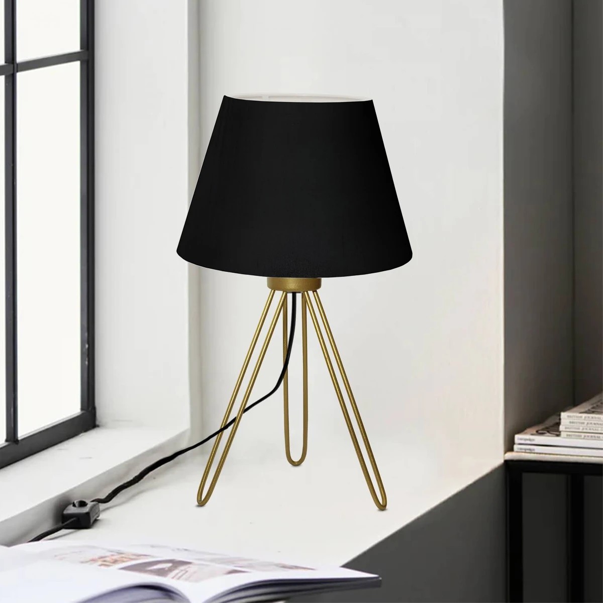 GloboStar® TRIP 204-0085 Μοντέρνο Eπιτραπέζιο Φωτιστικό Πορτατίφ Μονόφωτο 1 x E27 IP20 Χρυσό Μέταλλο με Μαύρο Ύφασμα - Μ22 x Π22 x Υ33cm