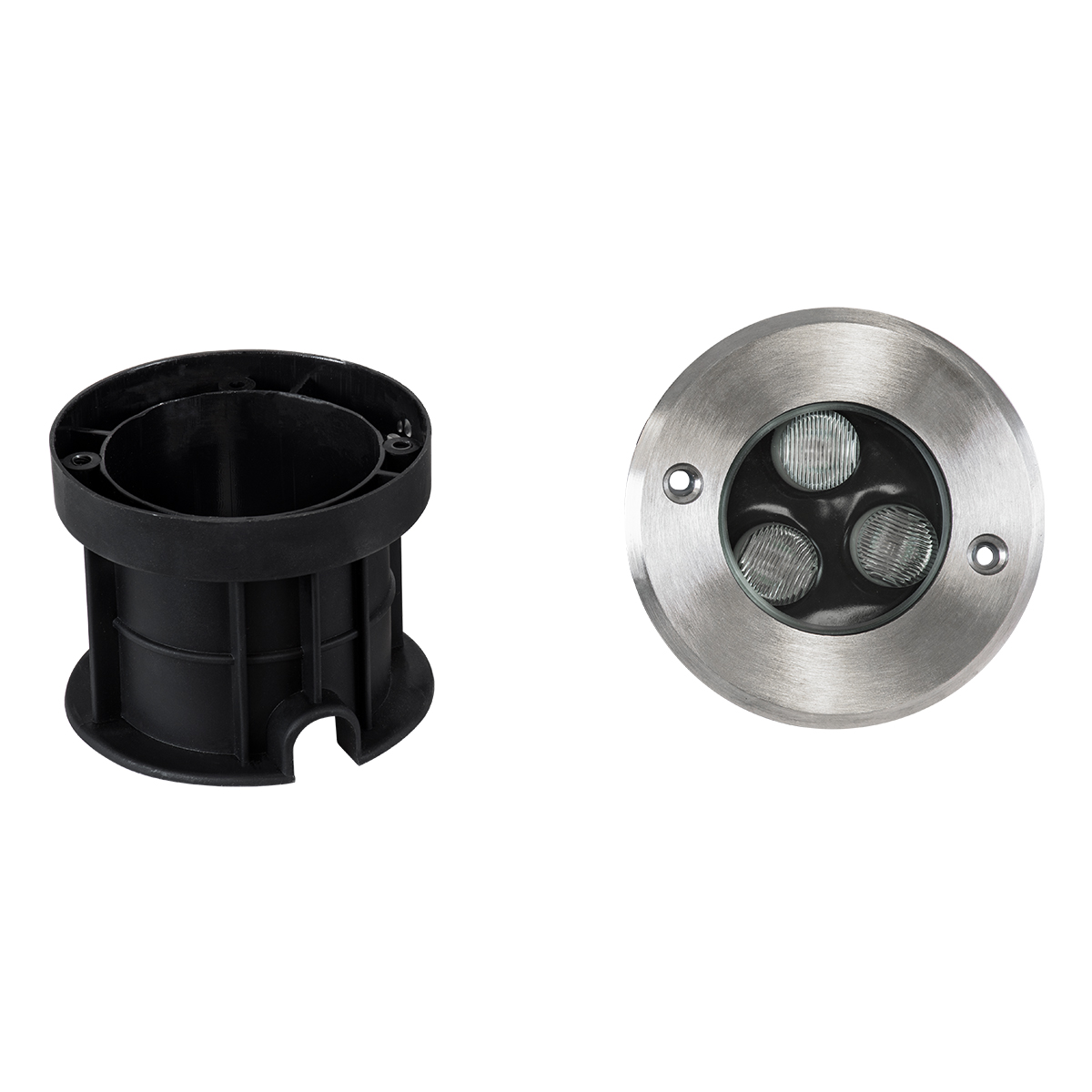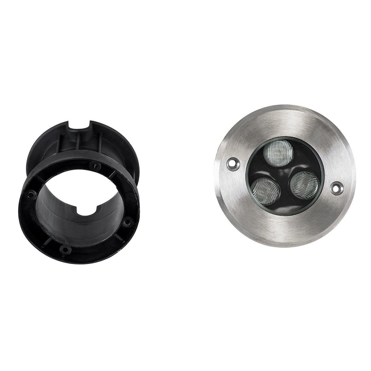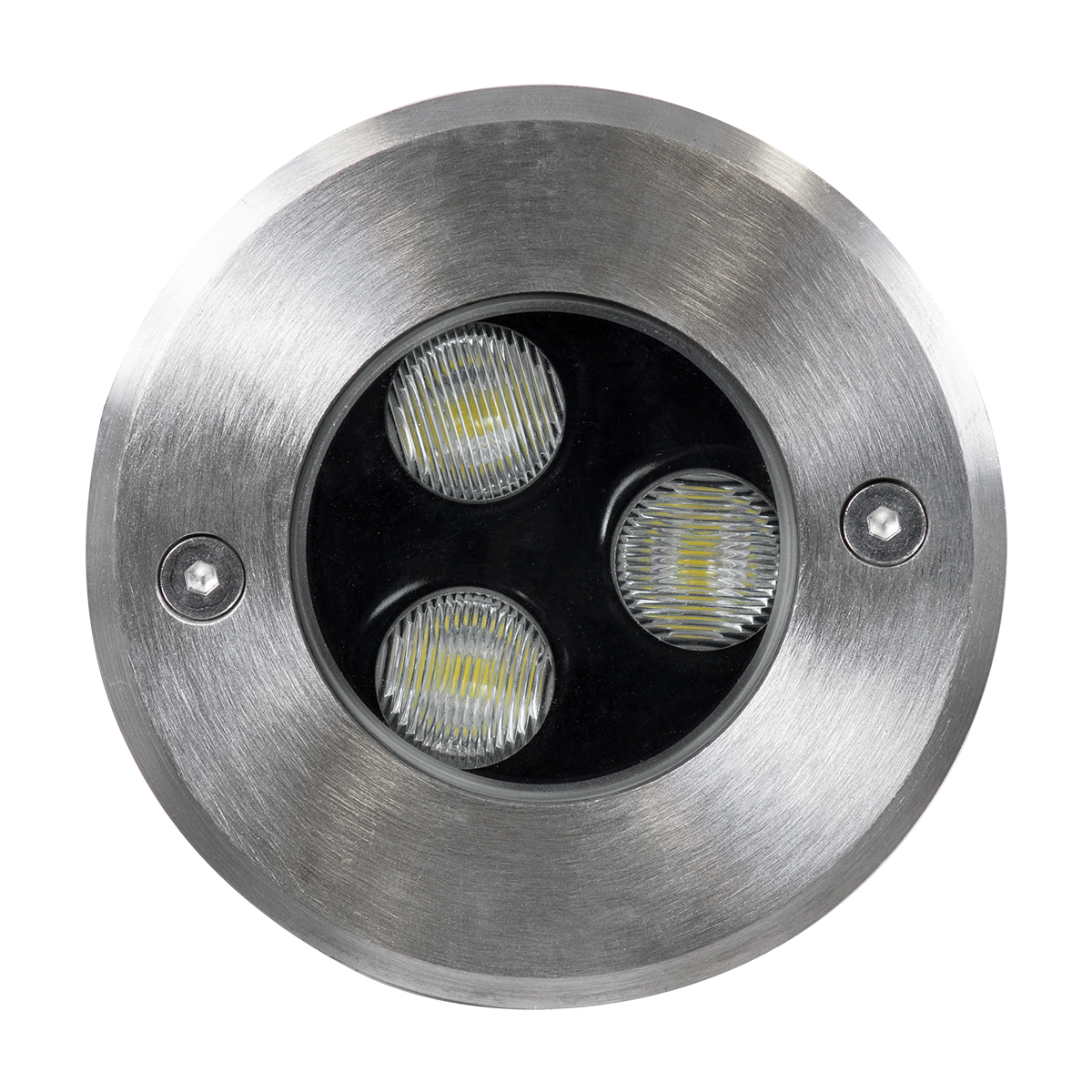 GloboStar® UNDERGROUND-FANI S-90980 Χωνευτό Φωτιστικό Σποτ Δαπέδου LED 12W 1200lm 60° DC 24V Αδιάβροχο IP68 Φ10 x Υ7.5cm Ψυχρό Λευκό 6000K - Ανοξείδωτο Ατσάλι