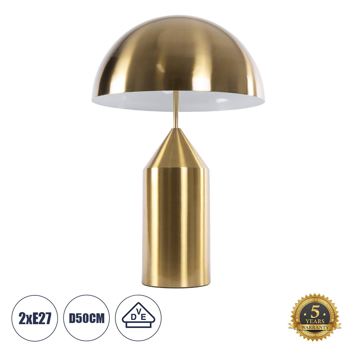 GloboStar® URANUS-L 61459 Μοντέρνο Επιτραπέζιο Φωτιστικό Πορτατίφ Δίφωτο 2 x E27 IP20 Χρυσό & Λευκό Μέταλλο - Μ50 x Π50 x Υ77cm