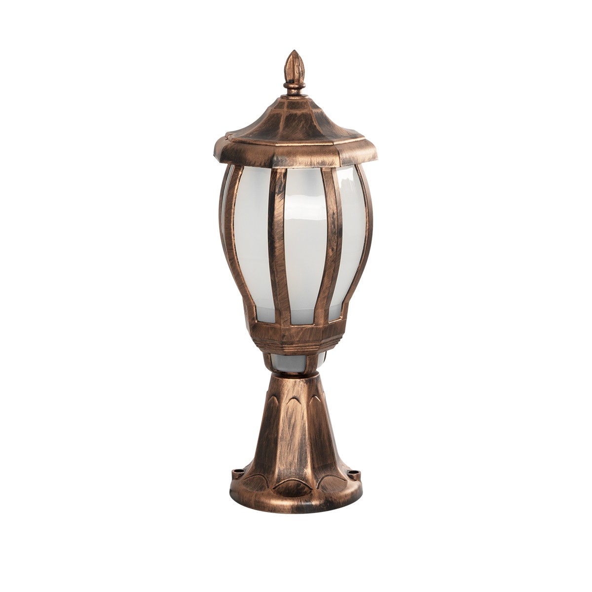 GloboStar® VERDI 203-0235 Vintage Επιδαπέδιο Φωτιστικό Φαναράκι Μονόφωτο 1 x E27 IP44 Χάλκινο & Διάφανο Πλαστικό - Μ18 x Π18 x Υ46cm