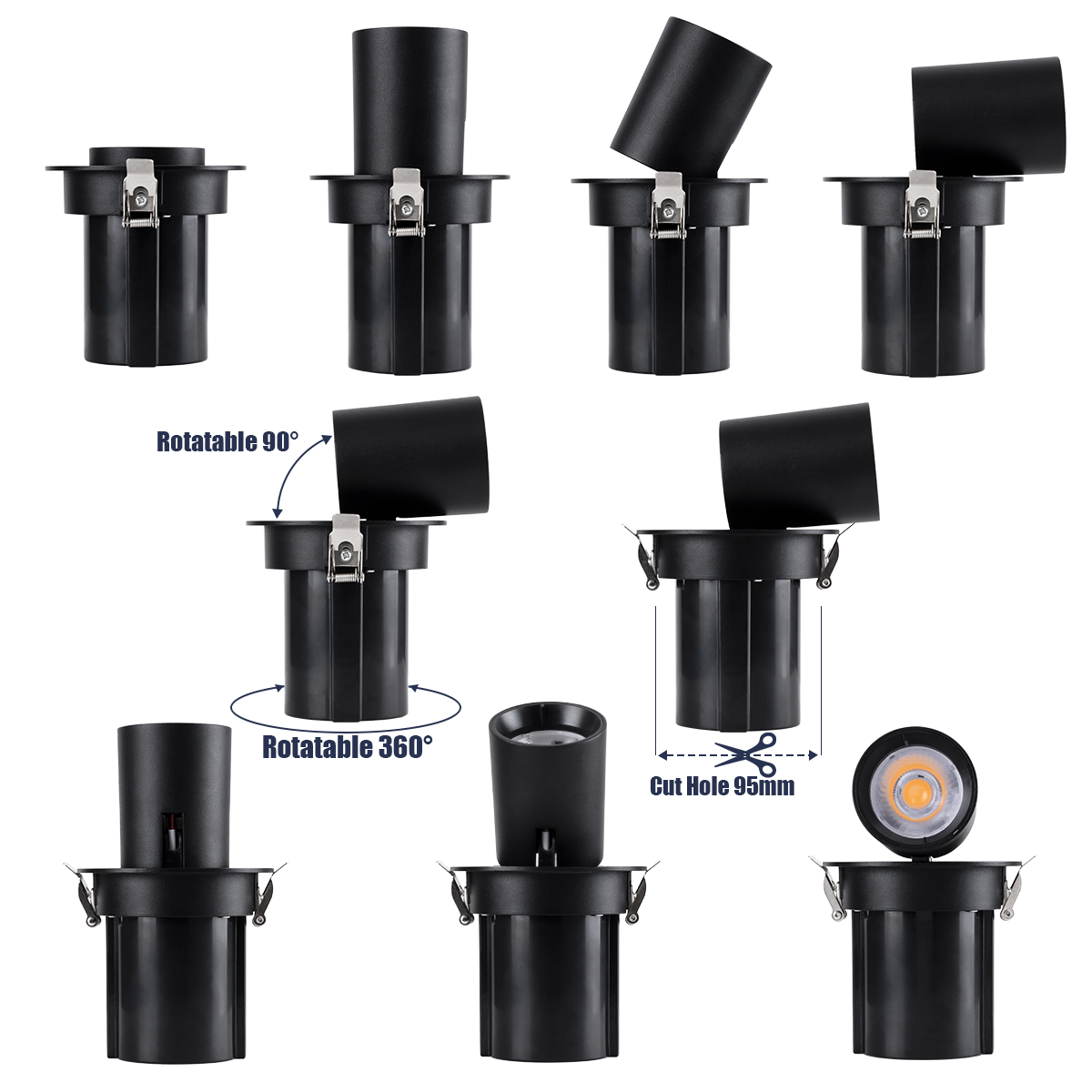 GLOBOSTAR® VIRGO-M 60308 Χωνευτό Κινούμενο Downlight Σποτ LED 12W 1560lm 36° AC 220-240V IP20 Φυσικό Λευκό 4500K - Bridgelux COB Chip & TÜV SÜD Driver - Μαύρο Ματ - Μ11 x Π11 x Υ11.5cm / Q9.5cm - 5 Χρόνια Εγγύηση