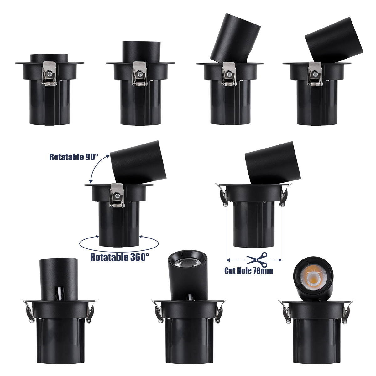GLOBOSTAR® VIRGO-S 60304 Χωνευτό Κινούμενο Downlight Σποτ LED 7W 910lm 36° AC 220-240V IP20 Φυσικό Λευκό 4500K - Bridgelux COB Chip & TÜV SÜD Driver - Μαύρο Ματ - Μ9 x Π9 x Υ9cm / Q7.8cm - 5 Χρόνια Εγγύηση