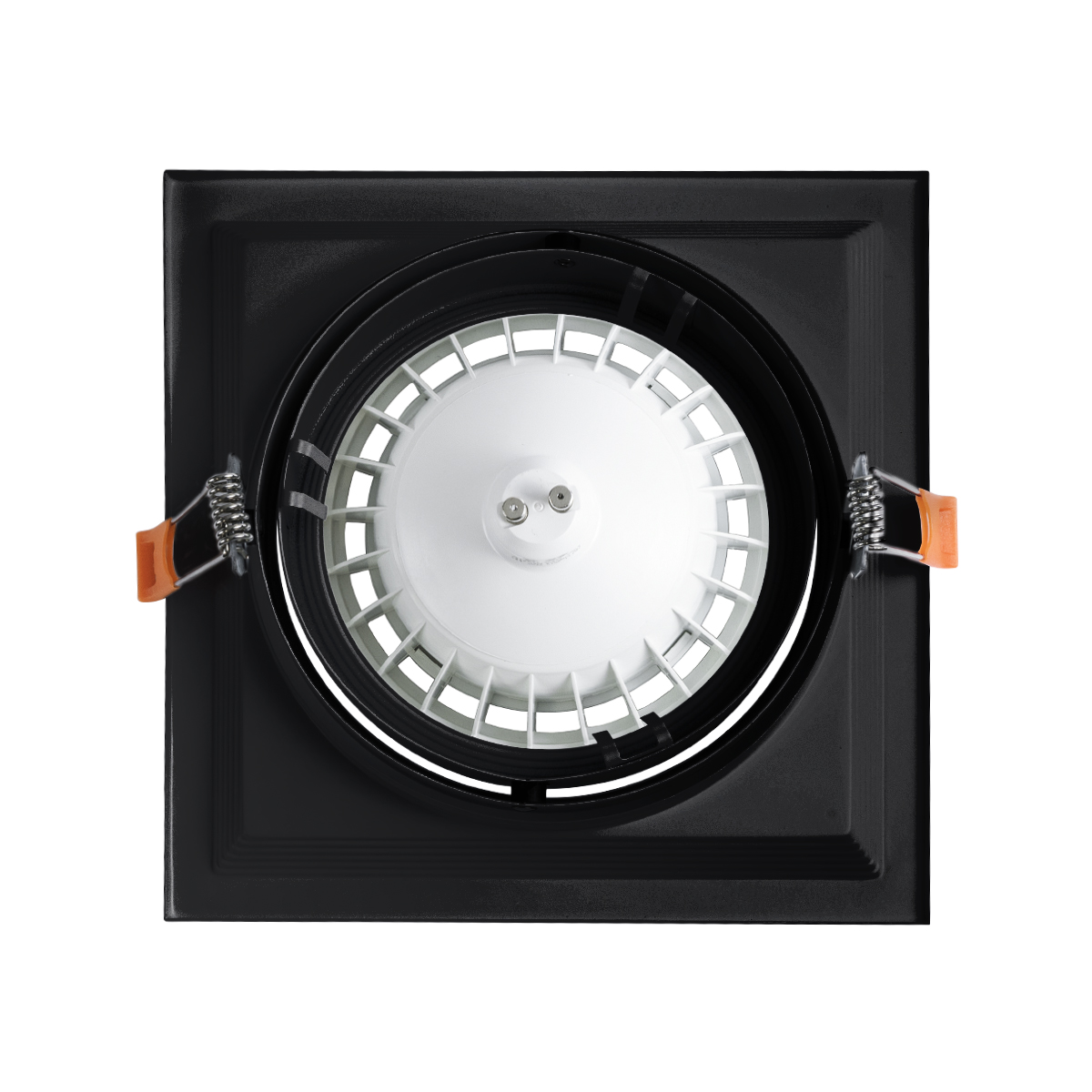 GLOBOSTAR® VITA 77853 Χωνευτή Κινούμενη Βάση για Σποτ AR111 για Ντουί GU10/GU5.3 IP20 - Μαύρο Ματ - Μ18 x Π18 x Υ4.5cm / Q17.5 x 17.5cm