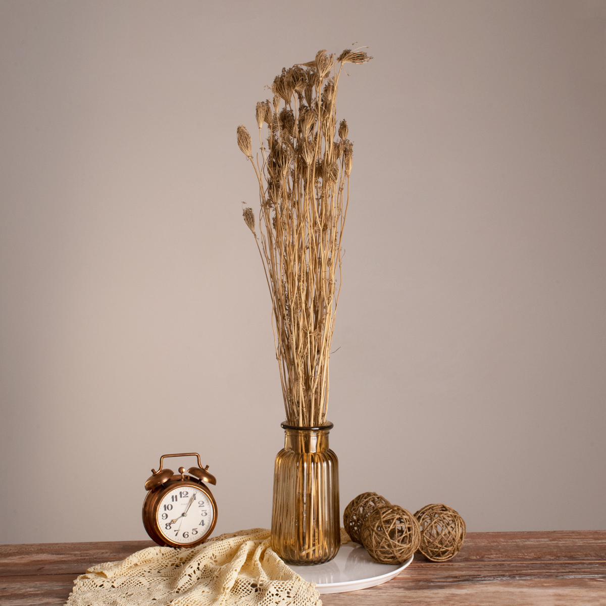 GloboStar® WILDCARROT 36547 Αποξηραμένο Φυτό Άγριο Καρότο - Μπουκέτο Διακοσμητικών Κλαδιών Μπεζ Υ80cm - Σετ 10 τμχ