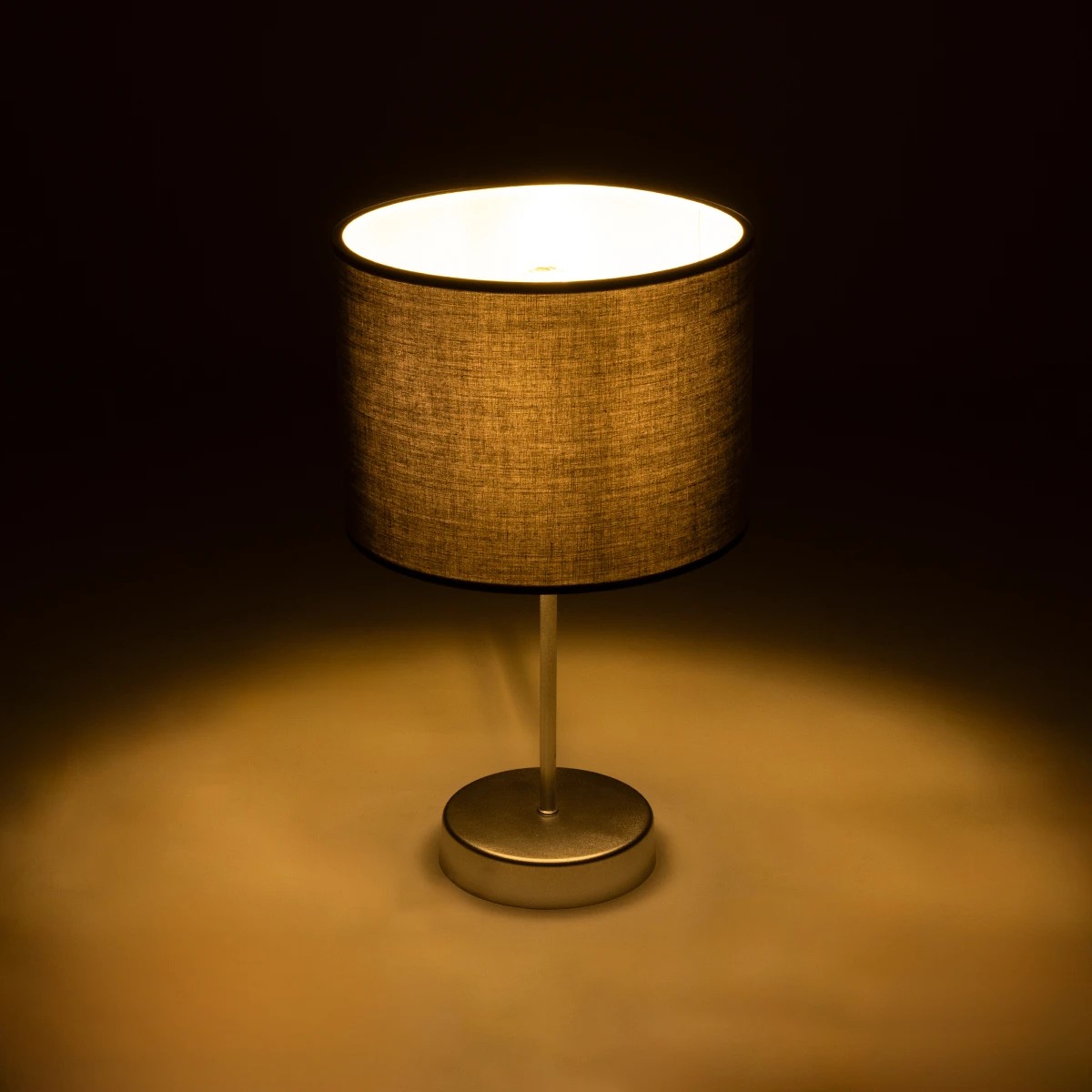 GloboStar® WIZ 203-0179 Μοντέρνο Επιτραπέζιο Φωτιστικό Πορτατίφ Μονόφωτο 1 x E27 IP20 Ασημί Μέταλλο με Γκρι Ύφασμα - Μ22 x Π22 x Υ36.5cm