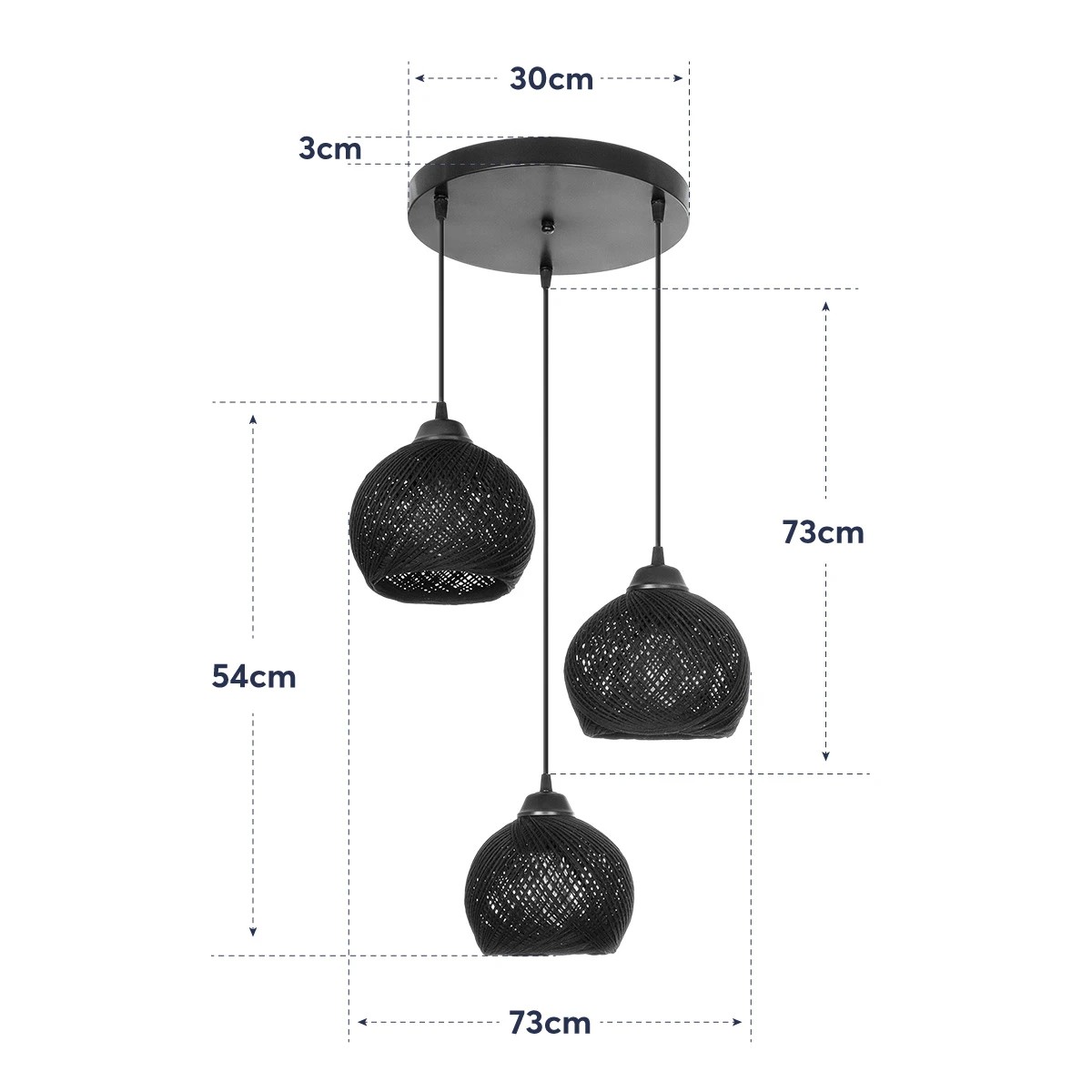 GLOBOSTAR® YASAM 203-0022 Vintage Κρεμαστό Φωτιστικό Οροφής με Ντουί 3 x E27 AC 220-240V IP20 - Μαύρο - Μ42 x Π42 x Υ54cm