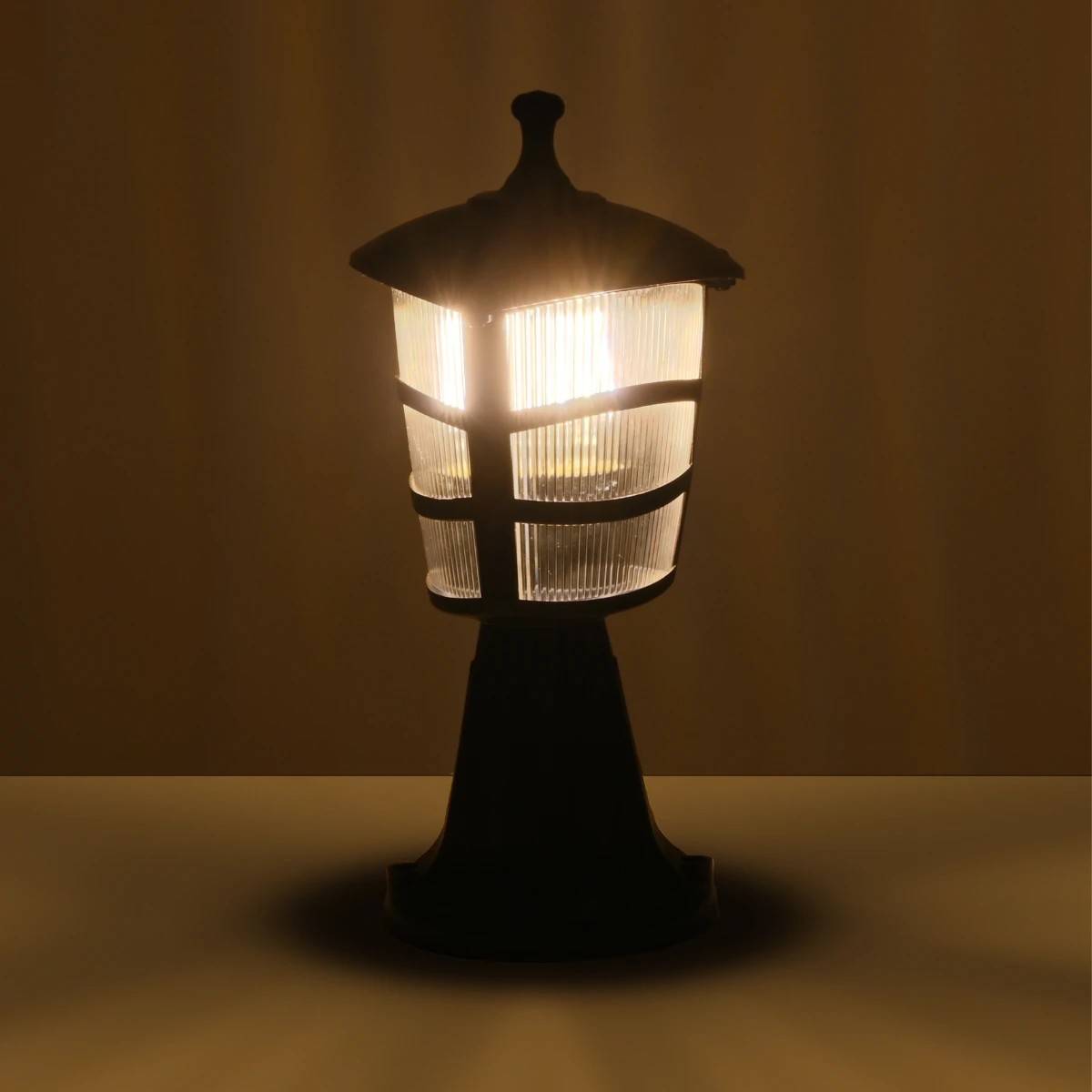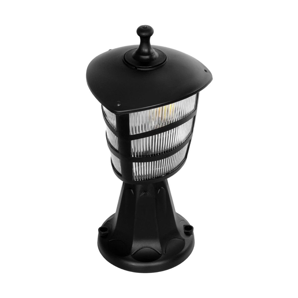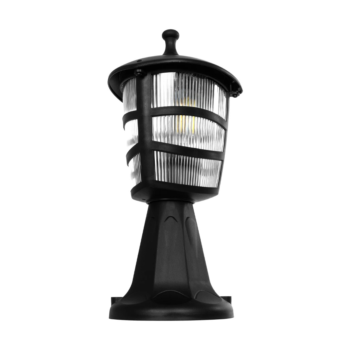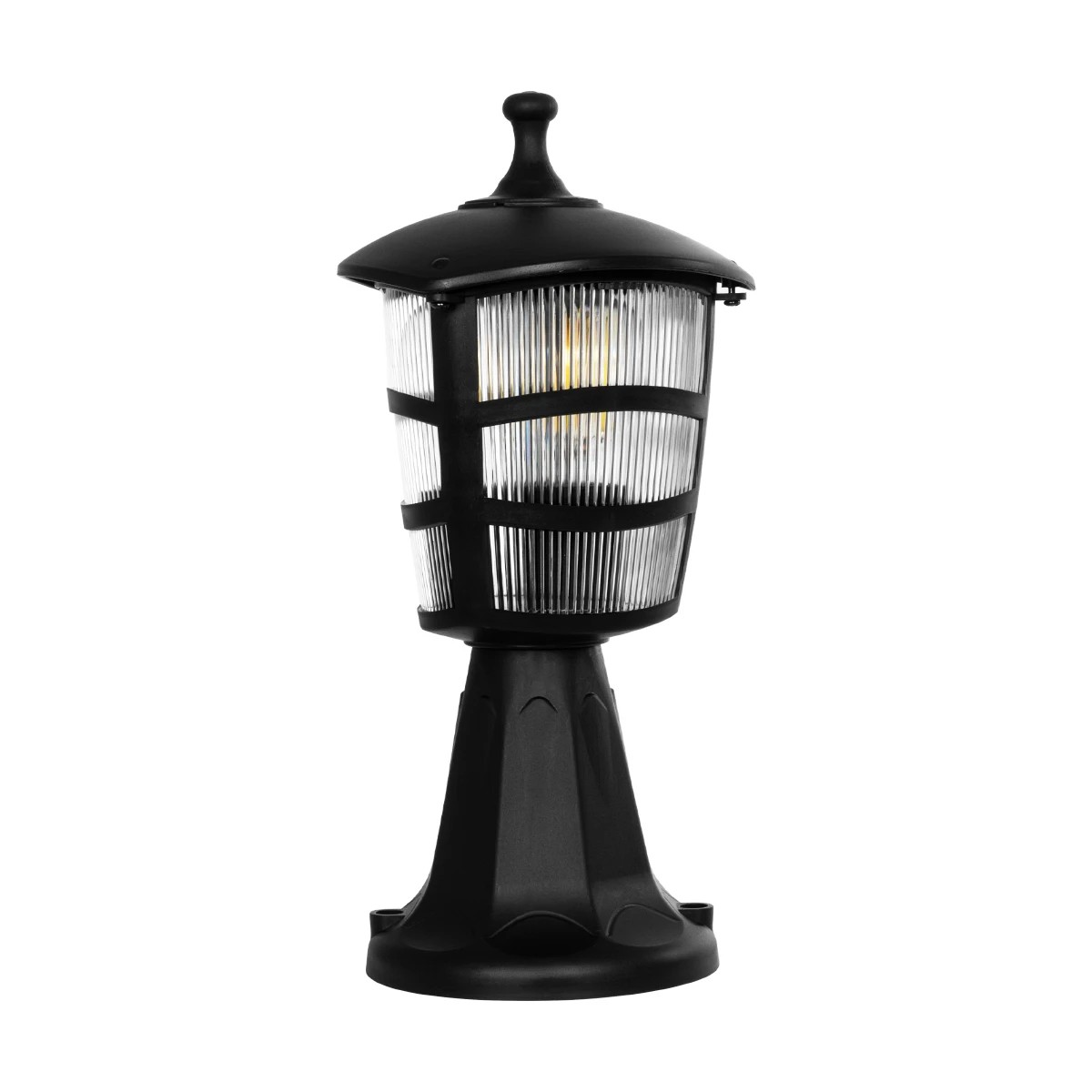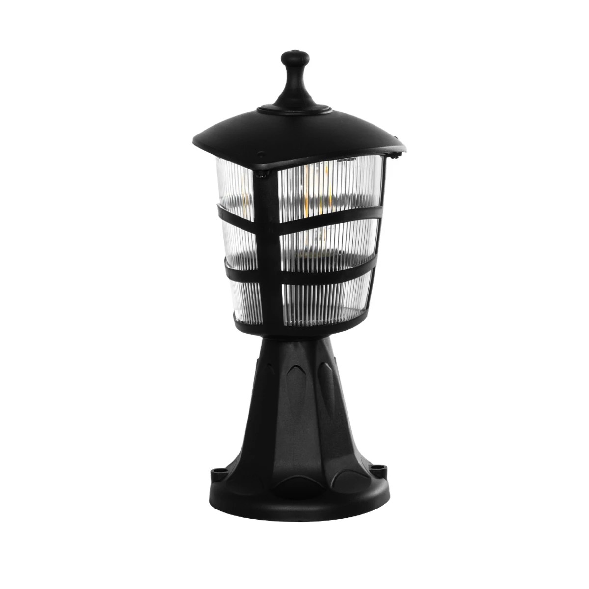GloboStar® ZARDIN 203-0205 Vintage Επιδαπέδιο Φωτιστικό Φαναράκι Μονόφωτο 1 x E27 IP44 Μαύρο & Διάφανο Πλαστικό - Μ17 x Π17 x Υ35cm