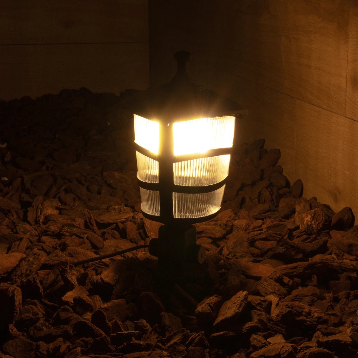GloboStar® ZARDIN 203-0208 Vintage Καρφωτό Φωτιστικό Φαναράκι Μονόφωτο 1 x E27 IP44 Μαύρο & Διάφανο Πλαστικό - Μ17 x Π17 x Υ50cm