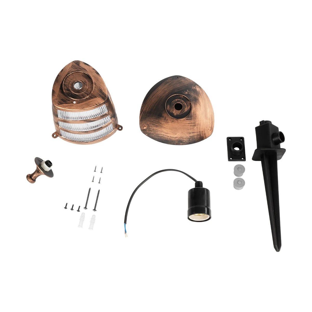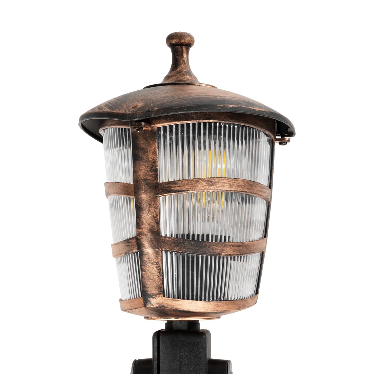 GloboStar® ZARDIN 203-0228 Vintage Καρφωτό Φωτιστικό Φαναράκι Μονόφωτο 1 x E27 IP44 Χάλκινο & Διάφανο Πλαστικό - Μ17 x Π17 x Υ50cm