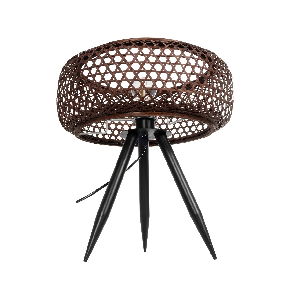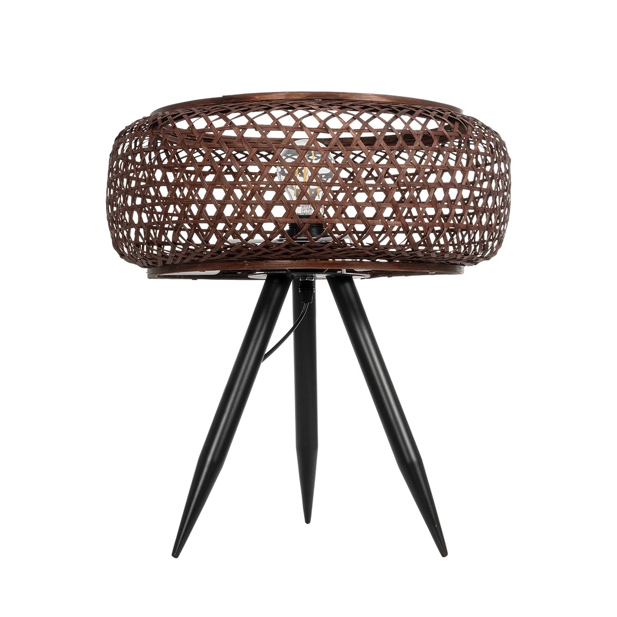 GloboStar® ZORION 999-0040 Vintage Επιτραπέζιο Φωτιστικό Πορτατίφ Μονόφωτο 1 x E27 IP20 Καφέ Ξύλο με Μαύρο Μέταλλο - Μ40 x Π40 x Υ43.5cm