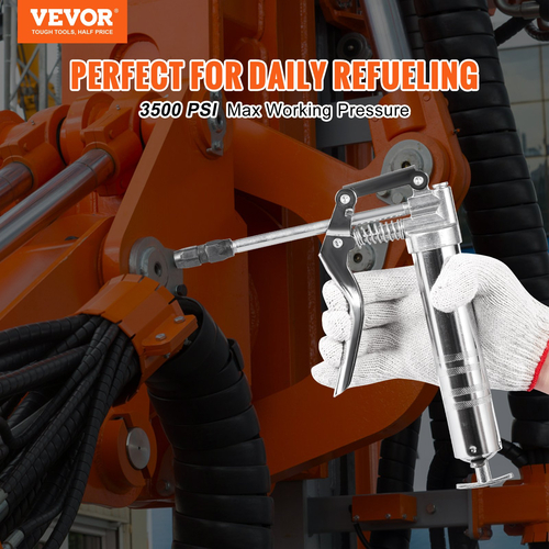 Μέγιστη πίεση εργασίας 3500 PSI: Το πιστόλι γράσου με λαβή πιστολιού σάς επιτρέπει να χειρίζεστε εύκολα διάφορες εργασίες λίπανσης υψηλής πίεσης χωρίς να ανησυχείτε για εμπλοκές λίπους. Είναι κατάλληλο για οχήματα, τρακτέρ, RVs, αυτοκίνητα, άξονες ισχύος εξόδου, κύλινδροι τιμονιού, ενώσεις γενικής χρήσης, χιαστί αναρτήσεις, σφαιρικές αρθρώσεις, χλοοκοπτικά, σασί και κινητήριους άξονες κ.λπ.