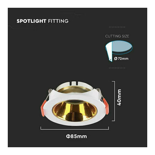 V-TAC Βάση Σποτ Χωνευτή Στρογγυλή Κινητή για GU10 IP20 Πλαστική Ø85x40mm Άσπρη με Χρυσό 6648