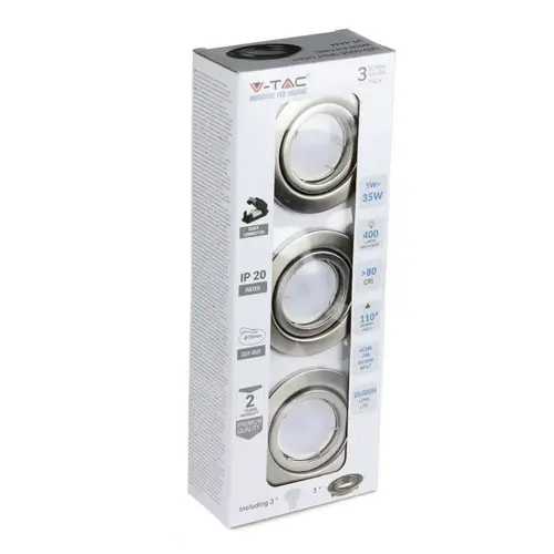 Το σετ 3 τεμαχίων χωνευτών σποτ της V-TAC προσφέρει μια ολοκληρωμένη και καλαίσθητη πρόταση για τον φωτισμό του εσωτερικού σας χώρου. Με φινίρισμα σατινέ νίκελ (ασημί), τα στρογγυλά αυτά σποτ ενσωματώνονται άψογα σε οροφές γυψοσανίδας, προσδίδοντας μια μοντέρνα και καθαρή αισθητική σε σαλόνια, διαδρόμους ή επαγγελματικούς χώρους. Το σετ περιλαμβάνει τόσο τα φωτιστικά πλαίσια όσο και τους αντίστοιχους λαμπτήρες GU10, έτοιμα για εγκατάσταση.