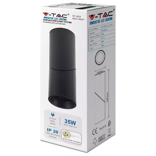 V-TAC Επιτοίχιο Φωτιστικό Σποτ για GU10 LED IP20 59.5x197mm Αλουμινίου Στρογγυλό Μαύρο Σώμα 8947