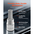 Ανθεκτικές και ανθεκτικές: Κατασκευασμένες από κράμα χάλυβα S2 υψηλής σκληρότητας και επιχρωμιωμένο ατσάλι CRV, οι επιφάνειες εξάγωνης υποδοχής διαθέτουν αμμοβολή και γυάλισμα καθρέφτη. Αυτός ο σχεδιασμός αντιστέκεται στη θραύση και τη διάβρωση, εξασφαλίζοντας χρόνια αξιόπιστη χρήση.
