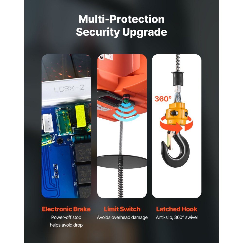 Ισχυρή ικανότητα ανύψωσης: Αυτό το φορητό βαρούλκο χειρίζεται έως και 1.550 λίβρες, ανυψώνει με 16,4 πόδια/λεπτό (χωρίς φορτίο) και φτάνει τα 25 πόδια. Σας βοηθά να ανυψώνετε μηχανές, χάλυβα ή έπιπλα σε γκαράζ, αποθήκες ή μπαλκόνια. Πολυεπίπεδη προστασία ασφαλείας: Αυτό το ηλεκτρικό βαρούλκο ανύψωσης συνδυάζει ηλεκτρονικά και μηχανικά φρένα για σίγουρο σταμάτημα. Ένας διακόπτης ορίου και ένα γάντζο μανδάλωσης 360° προσθέτουν ασφάλεια, ενώ ο κινητήρας σταματά αυτόματα σε περίπτωση απώλειας ισχύος ή στο ανώτατο όριο για να αποφεύγονται οι πτώσεις. Εύκολος έλεγχος 3 σε 1: Αυτός ο ηλεκτρικός ανυψωτήρας χειρός αντιμετωπίζει κάθετες ανυψώσεις και οριζόντια έλξεις σε μία μονάδα. Τα κουμπιά της λαβής ανταποκρίνονται γρήγορα, το ενσύρματο τηλεχειριστήριο 24 ποδιών προσφέρει ακριβή έλεγχο κλεισίματος και το ασύρματο τηλεχειριστήριο 200 ποδιών υποστηρίζει την ομαδική εργασία εν κινήσει. Ανθεκτικός, αξιόπιστος κινητήρας: Αυτός ο ηλεκτρικός γερανός με βαρούλκο χρησιμοποιεί κινητήρα 1500 W με ψύξη με εξαναγκασμένο ανεμιστήρα και διευρυμένες ψήκτρες άνθρακα. Ο σχεδιασμός βοηθά στην επίτευξη σταθερής απόδοσης και μεγαλύτερου χρόνου εργασίας για καθημερινές εργασίες. Ανθεκτική κατασκευή καλωδίου: Αυτός ο φορητός γερανός με βαρούλκο περιλαμβάνει ένα συρματόσχοινο από γαλβανισμένο χάλυβα υψηλής αντοχής που αντιστέκεται στη συστροφή και τη διάβρωση. Το καλώδιο βοηθά στην αποφυγή τσακίσεων και υποστηρίζει ασφαλέστερη μακροπρόθεσμη λειτουργία.