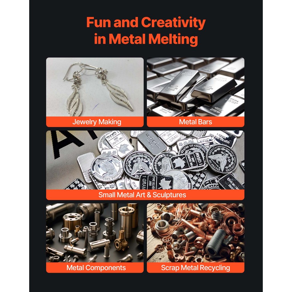 Γρήγορη απόδοση: Ο ηλεκτρικός ψηφιακός φούρνος τήξης μας συνδυάζει ισχύ 1500W με έξυπνο έλεγχο θερμοκρασίας, επιτρέποντας στα μέταλλα να λιώνουν γρήγορα και ομοιόμορφα. Οι σταθερές θερμοκρασίες έως και 1150℃ / 2102℉ εξασφαλίζουν ακριβή αποτελέσματα, προσφέροντας στους τεχνίτες σταθερή απόδοση κάθε φορά. Ευέλικτη χωρητικότητα: Σχεδιασμένο με χωνευτήριο 5 κιλών, αυτό το κιτ ηλεκτρικού φούρνου τήξης χρυσού μπορεί να καλύψει μικρές ράβδους χρυσού, κοσμήματα και διάφορα έργα χύτευσης μετάλλων DIY. Με δυνατότητα τήξης χρυσού, ασημιού, χαλκού, αλουμινίου και άλλων μετάλλων, προσφέρει σταθερά αποτελέσματα κάθε φορά. Σχεδιασμός μακράς διαρκείας: Το κεραμικό χωνευτήριο στον ηλεκτρικό μας κλίβανο προσφέρει ανώτερη διάρκεια ζωής σε σύγκριση με τον τυπικό γραφίτη, ελαχιστοποιώντας τις αντικαταστάσεις. Το ενσωματωμένο πλέγμα του ενισχύει την ανθεκτικότητα και τη σταθερότητα, εξασφαλίζοντας σταθερά, υψηλής ποιότητας αποτελέσματα με κάθε διαδικασία τήξης. Ψηφιακή ακρίβεια: Σχεδιασμένο με έναν ευανάγνωστο ψηφιακό πίνακα, αυτό το ηλεκτρικό χυτήριο μετάλλου εμφανίζει τη θερμοκρασία και τις παραμέτρους σε πραγματικό χρόνο. Η εύχρηστη διεπαφή του επιτρέπει στους νέους χρήστες να διαχειρίζονται τις λειτουργίες με σιγουριά, εξασφαλίζοντας ελεγχόμενη και ακριβή απόδοση τήξης. Ευέλικτη Κατασκευή: Το κιτ εργαλείου φούρνου τήξης επιτρέπει την κατασκευή κοσμημάτων, σημάτων και έργων τέχνης, ακόμη και την επαναχρησιμοποίηση παλιοσίδερων σε ξεχωριστές δημιουργίες. Κατάλληλο για μεγάλους, αεριζόμενους χώρους εργασίας, παρέχει ελευθερία και ευελιξία για πρακτική καλλιτεχνική εργασία.