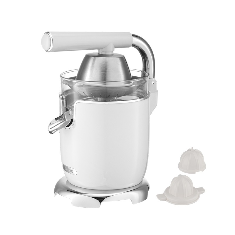 Ηλεκτρικός στίφτης της DSP με λαβή για εύκολη πίεση και βρυσάκι εξαγωγής του χυμού απευθείας στο ποτήρι σας. Υψηλής απόδοσης, πρακτικός και εύχρηστος για να έχετε καθημερινά γρήγορα και χωρίς κόπο τον αγαπημένο σας χυμό πορτοκαλιού, λεμονιού κα. Διαθέτει 2 κώνους στυψίματος διαφορετικού μεγέθους για μικρότερα και μεγαλύτερα φρούτα.