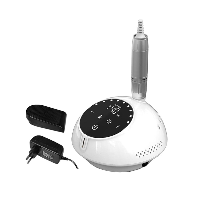 Επαγγελματικός τροχός νυχιών για μανικιούρ-πεντικιούρ με βάση στήριξης, με δεξιόστροφη και αριστερόστροφη λειτουργία και πεντάλ ποδιού.