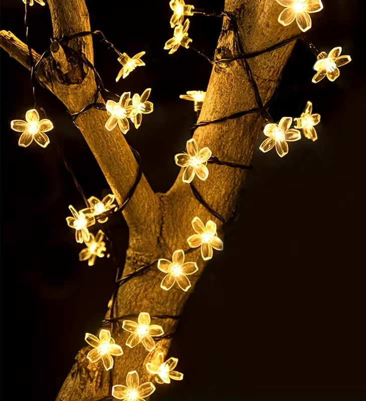Ηλιακή γιρλάντα φωτισμού LED με λαμπτήρες σε εντυπωσιακό σχέδιο Λουλούδι, με ενισχυμένο καλώδιο και ρυθμιζόμενο ηλιακό πάνελ, ιδανική για έναν όμορφο ατμοσφαιρικό φωτισμό στο μπαλκόνι, τον κήπο ή τη βεράντα σας, εύκολα, ασύρματα και οικονομικά χωρίς την ανάγκη πρόσβασης σε ρεύμα.