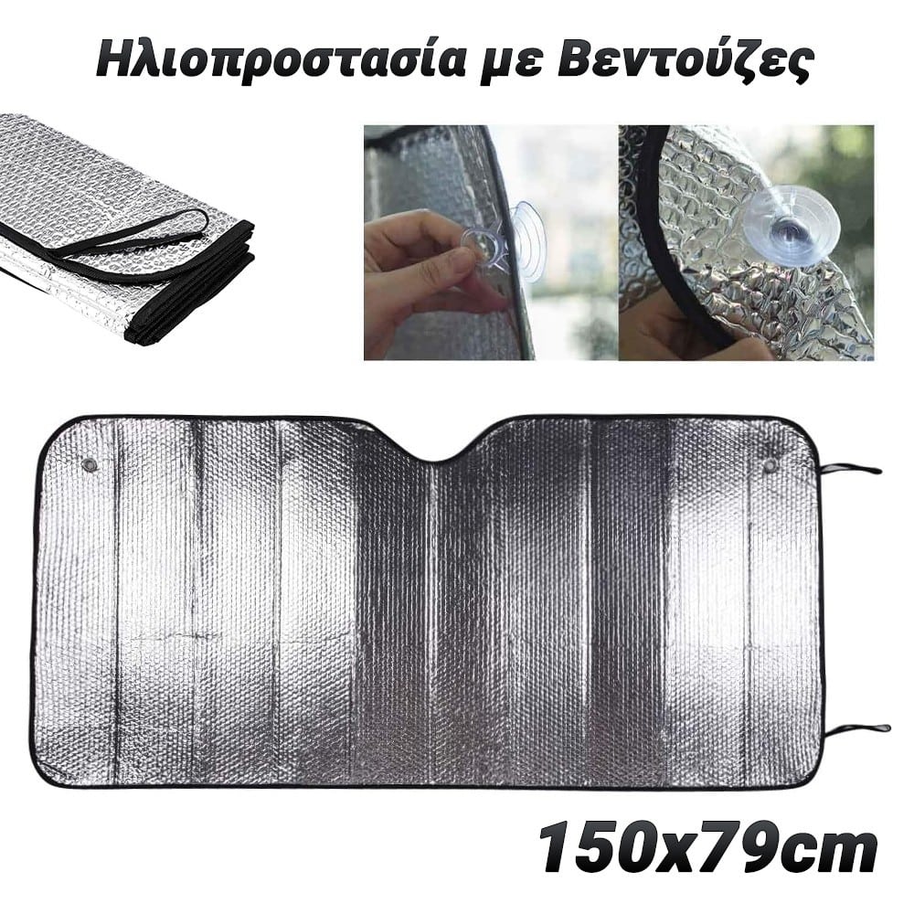 Όταν οι εξωτερικές θερμοκρασίες αυξάνονται, το εσωτερικό του σταθμευμένου οχήματός σας δεν χρειάζεται να αισθάνεται το ίδιο σαν φούρνος. Διατηρήστε αποτελεσματικά τη θερμοκρασία στο εσωτερικό του αυτοκινήτου, του SUV ή του φορτηγού σας σε χαμηλά επίπεδα.Προστασία από τις υπεριώδεις ακτίνες UV.Οι επιβλαβείς ακτίνες UV μπορούν να προκαλέσουν ξεθώριασμα των χαλιών και των ταπετσαριών του αυτοκινήτου σας και να προκαλέσουν ρωγμές σε άλλες επιφάνειες και σπάσιμο με την πάροδο του χρόνου. Το σκίαστρο του παρμπρίζ έχει αντι-UV επίπεδο 4, σχηματίζει ένα αποτελεσματικό φράγμα ενάντια στις έντονες ακτίνες UV του ήλιου και έτσι προστατεύει την ακεραιότητα και την εμφάνιση του εσωτερικού του αυτοκινήτου σας. Το σκίαστρο του παρμπρίζ του αυτοκινήτου διατηρεί το εσωτερικό του οχήματος πιο δροσερόΑντανακλαστικό υλικό πάχους 2mm με επικάλυψη αλουμινίου ΑσημίΔημιουργεί ένα αποτελεσματικό φράγμα ενάντια στις βλαβερές ακτίνες UV του ήλιου (αντι-UV επίπεδο 4)Αναδιπλώνεται σε συμπαγές μέγεθος για αποθήκευση. Ελαφρύς, φορητός σχεδιασμόςΔιαστάσεις: 150 cm x 79 cm